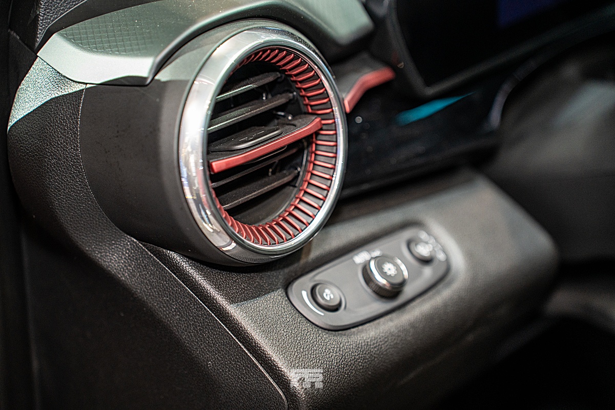 RS는 젯 블랙&레드 포인트의 RS 전용 인테리어가 적용되어 RS 인조가죽 시트와 도어 데코 패널, D 컷 스티어링휠, RS 로고가 새겨진 기어노브, 블랙 헤드라이너 등 시각적으로 역동성을 전달해준다.