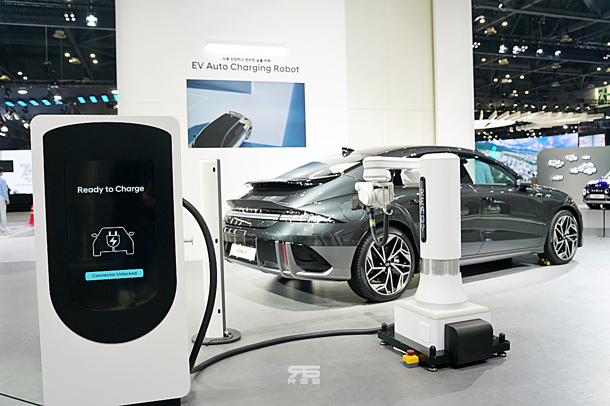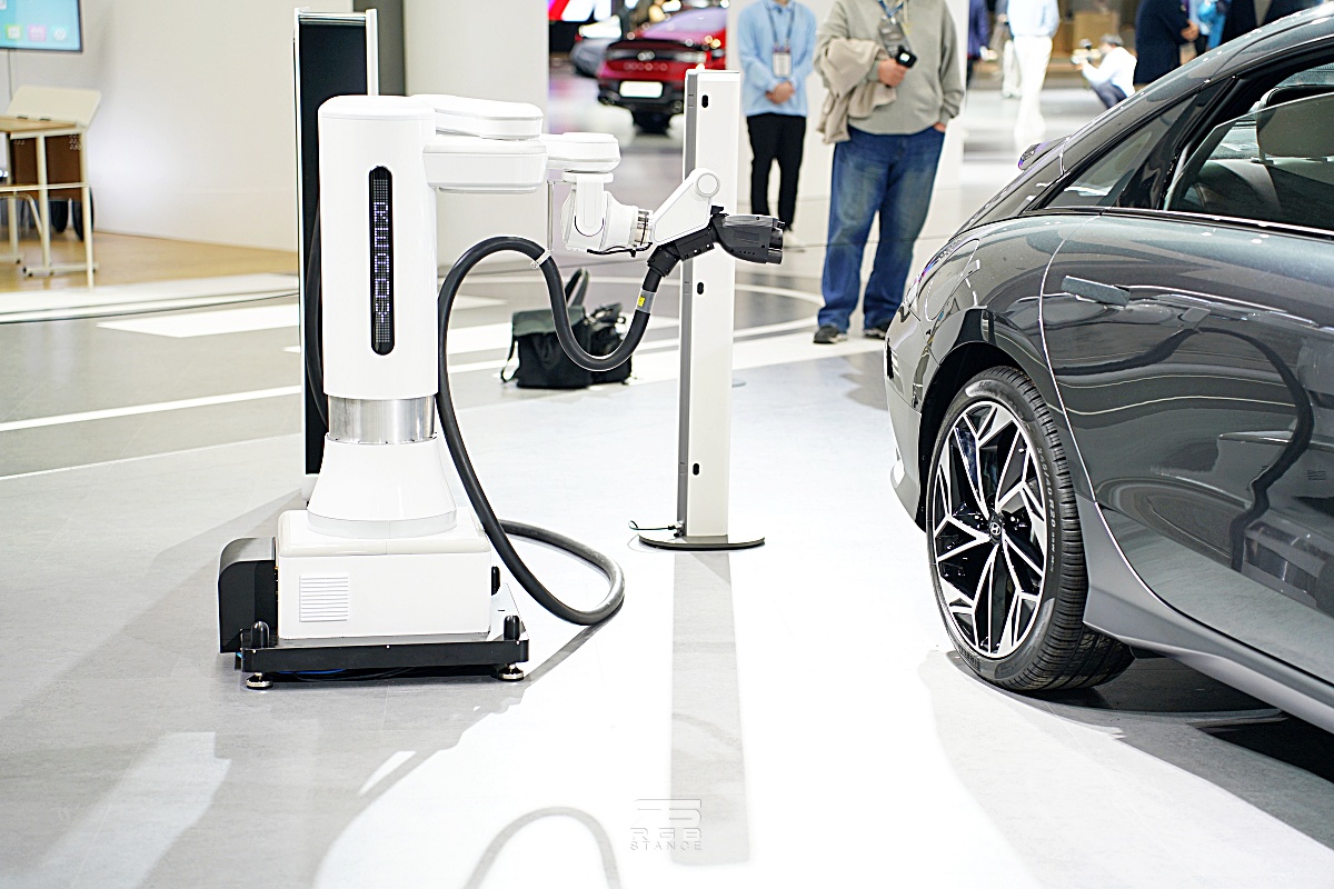 한편, 로보틱스 모빌리티 라이프를 볼 수 있는 전기차 자동충전 로봇과 배송 로봇 등 로보틱스의 미래 방향성을 엿볼 수 있었는데, 기존 충전기보다 무거운 초고속 충전기를 로봇으로 전기차의 충전구에 체결해주고, 충전이 완료되면 알아서 제자리로 돌아가는 외팔형 로봇은 전기차 충전 편의성을 높여줄 것으로 기대되며, 배송 로봇은 PnD(Plug and Drive) 모듈을 장착하여, 이동이 자유롭고, 라이다, 카메라 센서 등 자율이동기술과 함께 최적 경로를 통해 배송시간을 줄일 수 있는 모습을 보여준다.