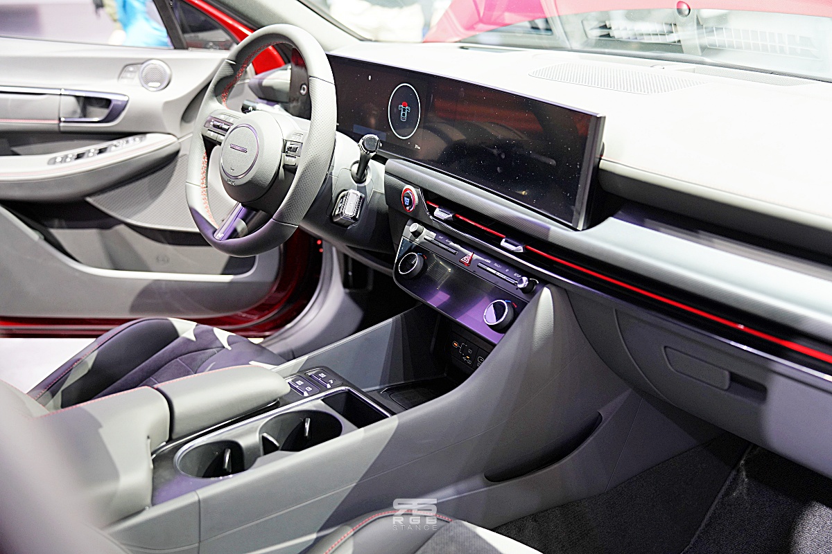 특히, 실내에서는 현대차 최초로 적용된 파노라믹 커브드 디스플레이가 운전석부터 센터페시아까지 계기판과 내비게이션이 하나로 이어져 세련된 모습을 보여주며, 무선 소프트웨어 업데이트 및 SDV(소프트웨어 중심으로 진화하는 자동차)로 진화한 모습을 보여주었다.