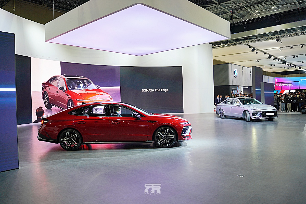 현대자동차 부스에서 많은 관심을 받은 모델은 8세대 쏘나타 부분변경 모델인데, 풀체인지급의 부분변경된 쏘나타 디 엣지의 날렵해진 디자인과 넓은 실내공간 및 차급을 뛰어넘는 편의 및 안전장비 등을 통해 국내 중형 세단의 새로운 기준을 세우고 있다.