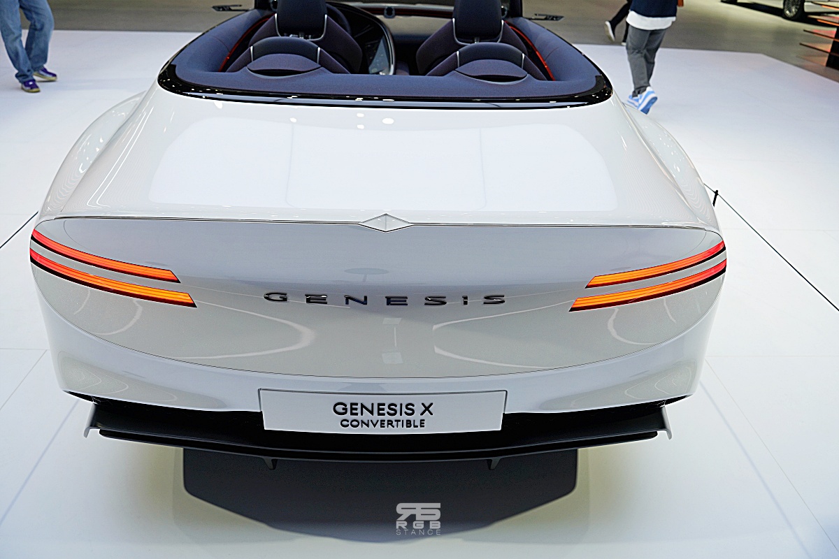 제네시스 플래그십 세단 G90 롱휠베이스가 전시되어 있는 곳에서는 뱅앤올룹슨 베오소닉 사운드테크 등을 체험할 수 있는데, 관람객들이 가장 많은 관심을 갖고 보는 것은 바로 엑스(X) 컨버터블이다. 국내 최초 컨버터블 컨셉트카이면서, 한국적인 미와 정서를 담은 컬러는 기품 있는 두루미의 자태에서 영감을 얻어 펄이 들어간 ‘크레인 화이트’ 가 사용되었고, 한국 전통 가옥의 지붕에서 영감을 얻은 ‘기와 네이비’ 컬러가 실내에 사용된 점이 특징이다.