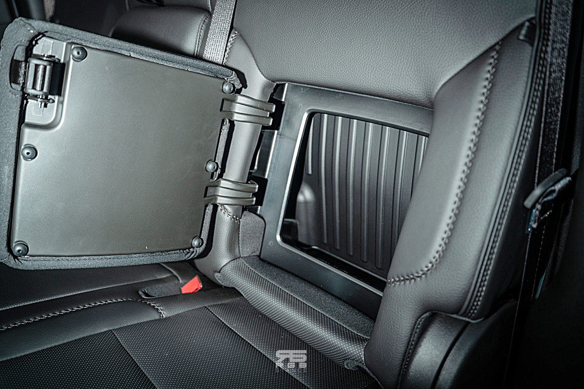 이런 기능들 외에 인상적인 것은 아주 넓은 실내공간이다. 1열은 물론, 2열의 공간 역시 매우 넓직한데, 1,102mm 의 레그룸을 통해 성인이 앉아도 남아도는 공간이 특징이다. 여기에 시트백 쿠션 내부와 시트 하단부에 히든 스토리지가 있는데, 아쉽게도 픽업트럭의 구조상 2열 시트의 등받이 각도는 조절되지 않는다.