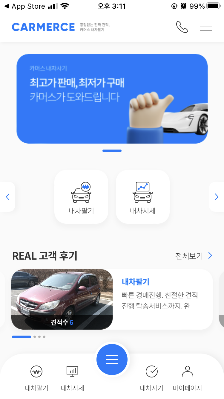 이렇게 간편하고 빠른 카머스 내차팔기! 내차 팔 때, 진짜 내편이 되어서 손해 없이 최고가로 중고차 판매가 가능한 카머스를 이용하는 것은, 중고차 판매를 한다면 필수로 알아야 하는 아이템이다.