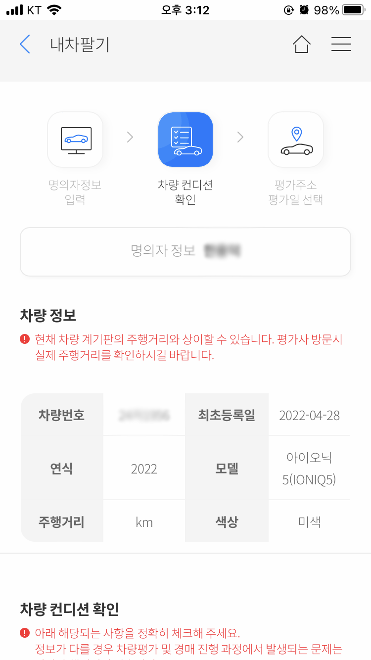 실제로 어플리케이션을 이용한 내차팔기 서비스를 이용해보니, 너무나도 쉽고 편리했다. 어플리케이션을 다운받고 내차를 판매하는 것은 딱히 회원가입을 하지 않아도 가능한데, 기본적인 차량 컨디션과 함께, 보다 확실한 차량 평가를 위해 평가사가 도착하는 날짜와 시간, 주소를 정하면, 예약된 날짜와 시간에 맞춰 카머스 평가사가 방문한다.
