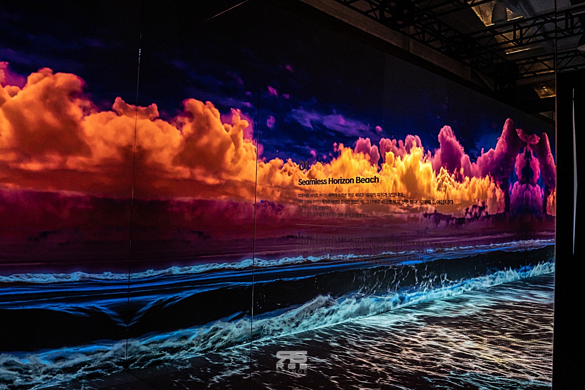 가장 먼저 만나보는 Seamless Horizon Beach 에서는 아르떼 뮤지엄과의 협업을 통해 쏘나타 디 엣지의 심리스 호라이즌 램프를 표현한 수평선을 경험할 수 있는데, 새로움을 찾아 항해를 떠나듯 밤과 아침, 새벽의 수평선을 영상으로 경험할 수 있도록 해놓았다.