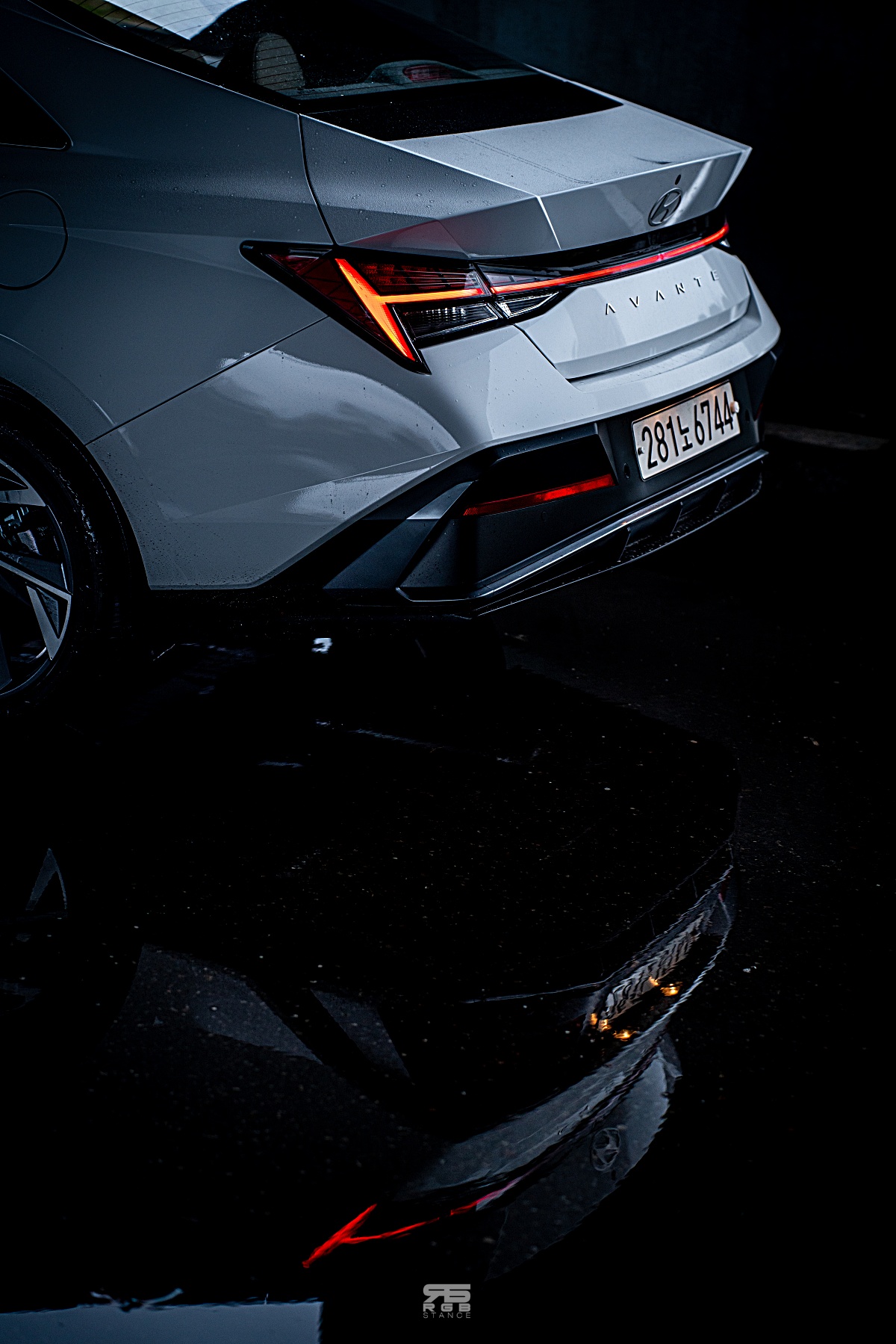이미 7세대 아반떼의 강렬한 엣지라인들이 시선을 사로잡기에 충분했는데, 이전보다 더 낮춰진 헤드램프와 프론트 그릴과 DRL 이 하나로 이어진 것 같은 디자인은 현대차가 최근 밀고 있는 ‘심리스 호라이즌’ 디자인과도 맥을 같이하고 있다. 프론트 그릴을 포함해 앞모습은 상당히 강렬해졌는데, 뒷모습과 옆모습은 그대로이다. 뒷모습은 범퍼 디자인이 살짝 바뀌는 정도이긴 해도 앞모습의 와이드하고 낮아진 모습은 강렬한 존재감을 보여주기에 충분하다.