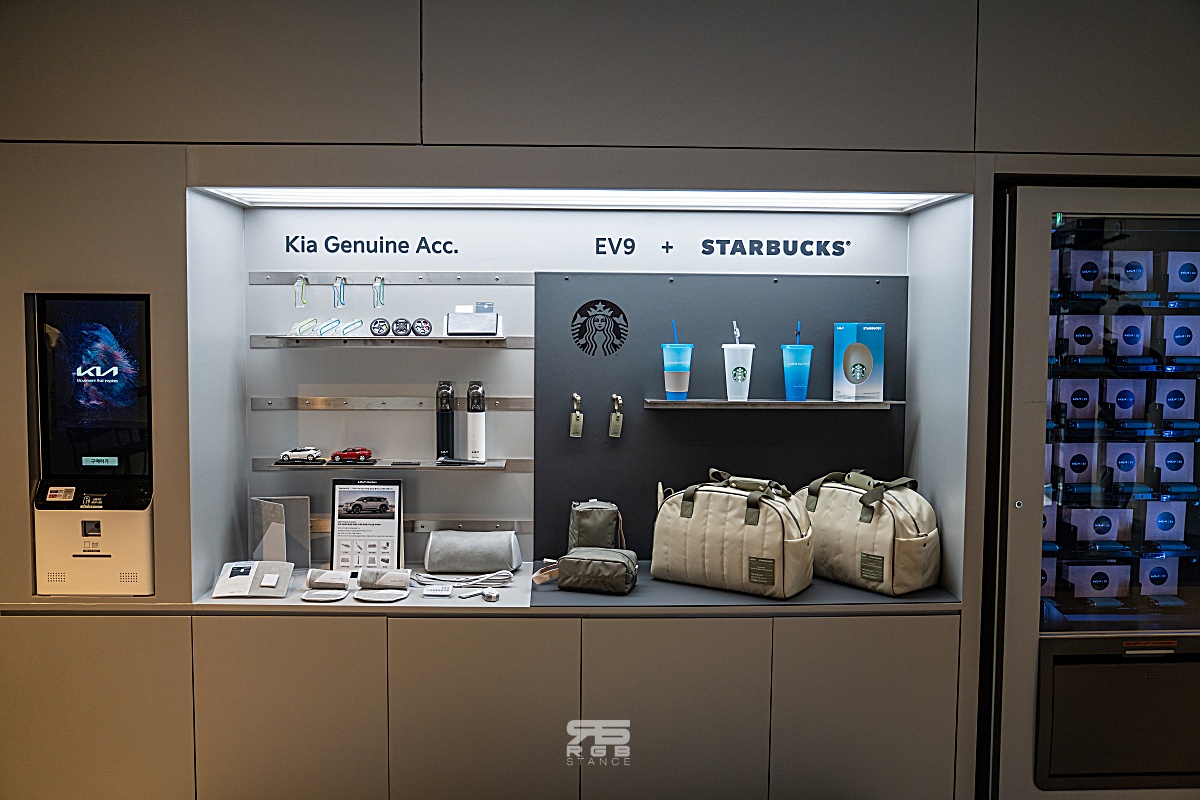 그리고, 다른 건물에서는 각종 이벤트를 통해 얻게 되는 코인으로 기념품을 얻을 수 있는 자판기와 EV9 & 스타벅스의 콜라보레이션으로 만들어진 다양한 상품들이 전시되고 있다. 기아의 성수동 언플러그드 그라운드는 네이버 예약을 통해 운영되며, 별도의 비용 없이 무료로 관람이 가능하다.