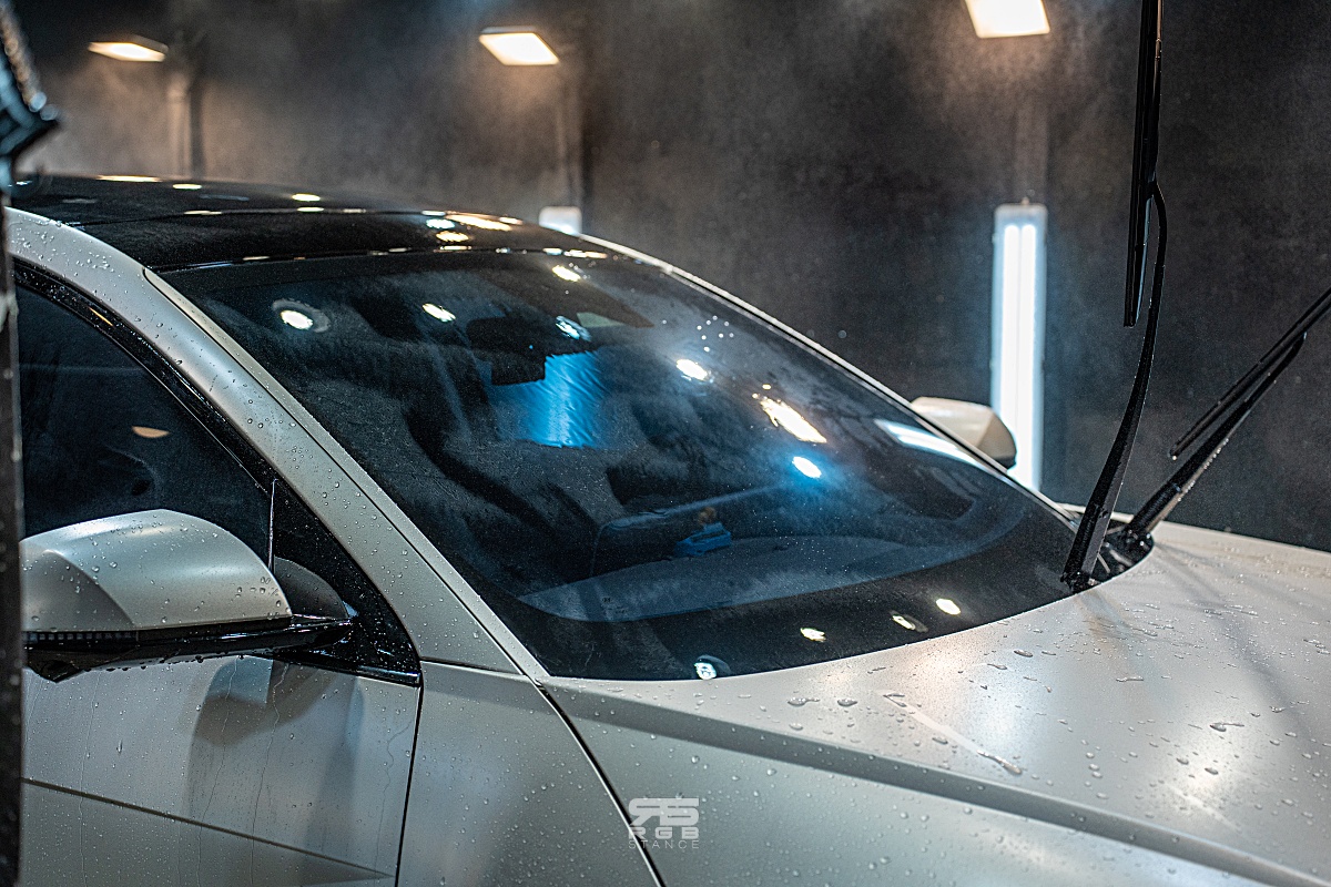 유막제거 작업을 하고 나서 물을 뿌려보면 유막제거가 제대로 되었는지 확인할 수 있는데, 친수성을 띄면 제대로 유막제거가 완료된 것으로 확인하고, 다시 한번 차량을 닦아준 후 확실하게 물기 제거를 해주고 유리 발수코팅 작업을 시작한다.