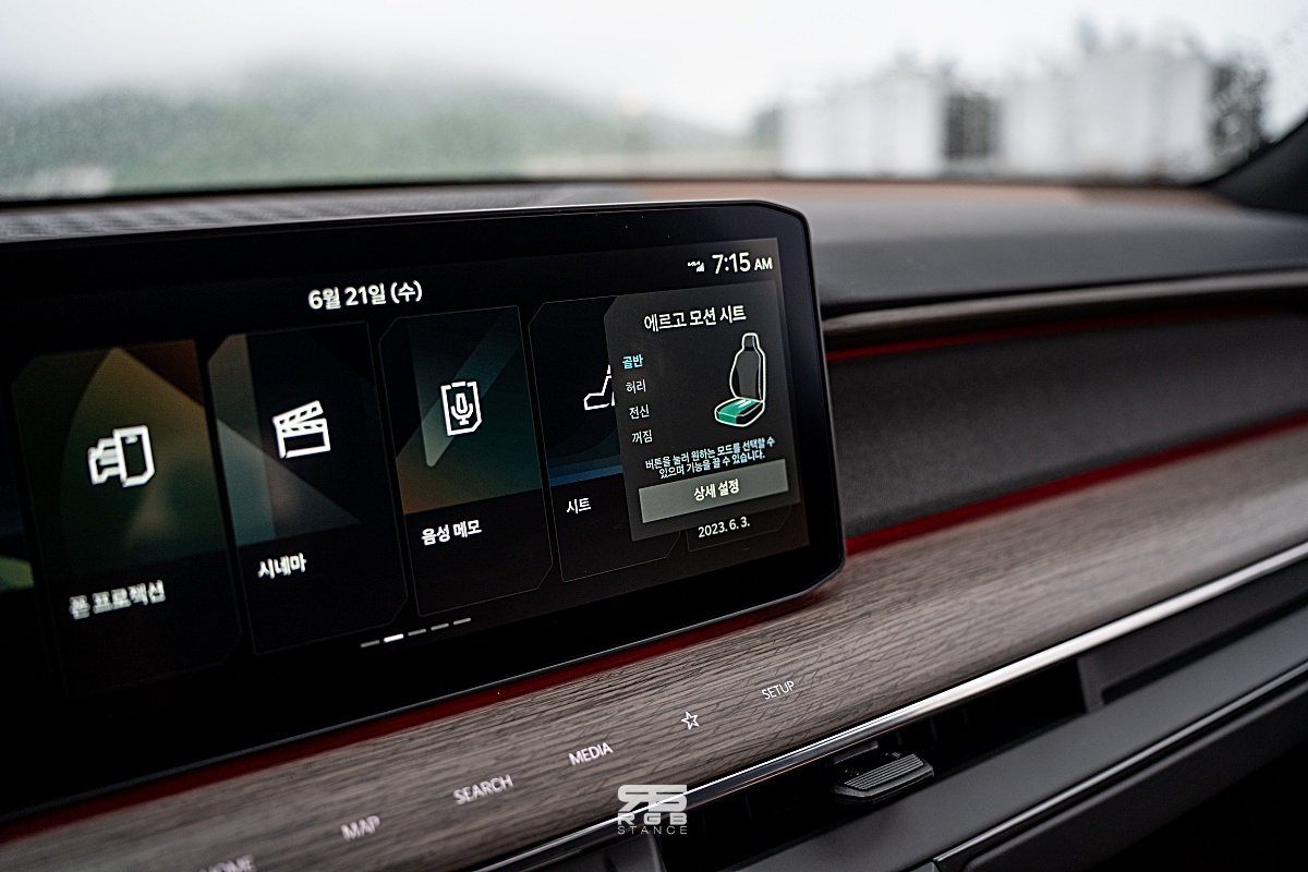 실내 1열 공간은 에르고 모션시트로 마사지가 되는 건 장거리 운행시 꽤 도움이 되며, 컵홀더부터 릴렉션 컴포트 시트, 지문인증 시스템, HUD 등 편의사양들이 눈에 뜨지만, 더 관심이 가는 것은 바로 2열과 3열이다.