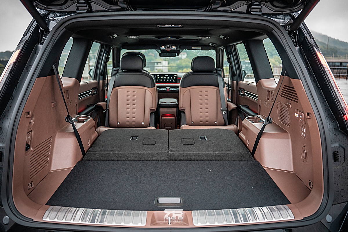 3열은 2열과 달리 성인이 앉기에는 다소 좁다. 단거리 이동이라면 문제 없겠지만, 성인이 타는 것은 추천하지 않는다. 다만, 이 차의 용도는 패밀리카로 쓰기에 딱인 만큼, 굳이 3열까지 타고 다닐 일은 많지 않을거라 크게 신경쓰이지 않는 정도다. 하지만, 3열에도 USB-C Type 이 지원되며, 컴홀더까지 있어서 제법 쓸만하다. 또한, 2열에도 3존 독립제어 풀오토 에어컨과 함께 확산형 루프 에어벤트가 있어서 쾌적한 실내를 만들 수 있다. 그리고, 센터콘솔 아래는 작은 테이블로도 활용 가능한 수납공간도 하나의 포인트다. 실내공간에 대한 편의성을 많이 생각한 듯 하다.