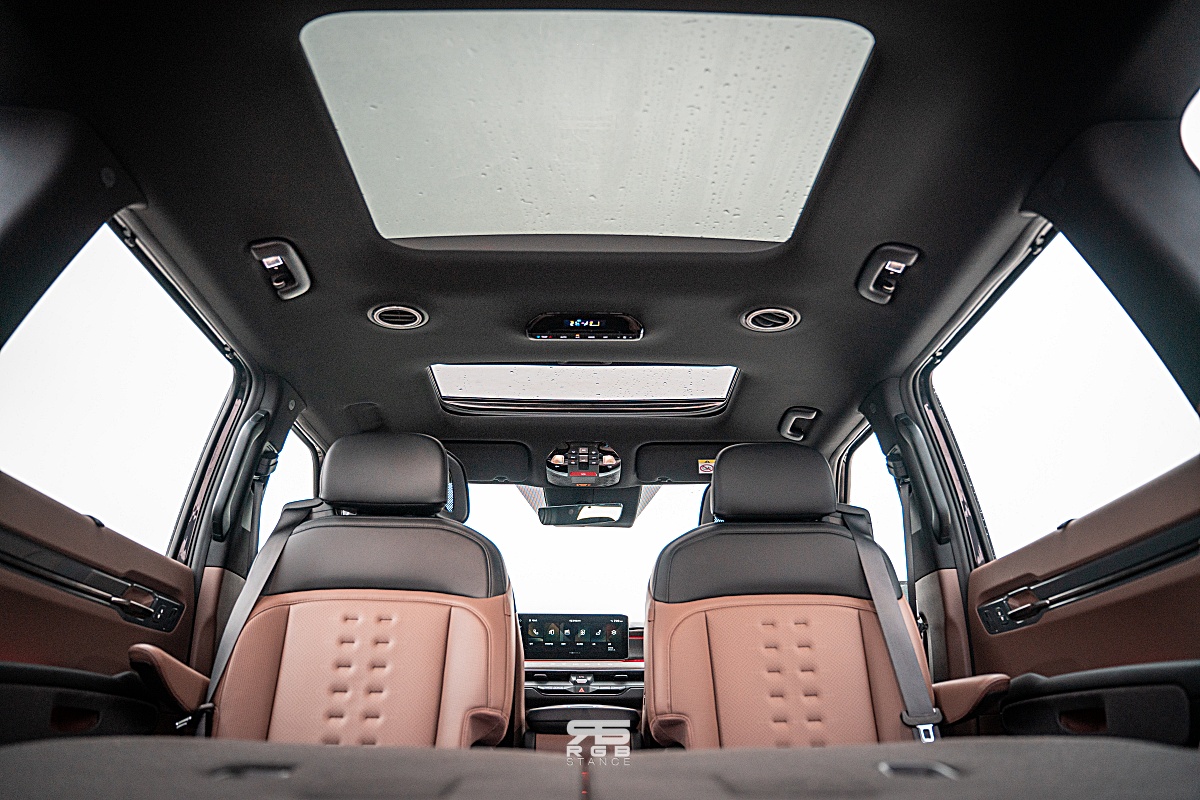 3열은 2열과 달리 성인이 앉기에는 다소 좁다. 단거리 이동이라면 문제 없겠지만, 성인이 타는 것은 추천하지 않는다. 다만, 이 차의 용도는 패밀리카로 쓰기에 딱인 만큼, 굳이 3열까지 타고 다닐 일은 많지 않을거라 크게 신경쓰이지 않는 정도다. 하지만, 3열에도 USB-C Type 이 지원되며, 컴홀더까지 있어서 제법 쓸만하다. 또한, 2열에도 3존 독립제어 풀오토 에어컨과 함께 확산형 루프 에어벤트가 있어서 쾌적한 실내를 만들 수 있다. 그리고, 센터콘솔 아래는 작은 테이블로도 활용 가능한 수납공간도 하나의 포인트다. 실내공간에 대한 편의성을 많이 생각한 듯 하다.