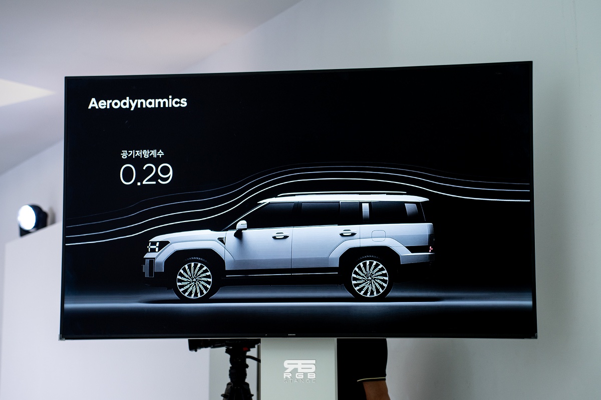 특히, 이렇게 크고 각진 디자인에서도 공기저항계수가 0.29cd 라는 점에서 놀라웠는데, 단순히 디자인적인 요소 뿐 아니라, 기능적인 요소들에 대한 고민들이 상당했음을 알 수 있다. 여기에 측면은 대담해진 루프라인과 함께 길어진 전장과 짧아진 프론트 오버행 및 21인치 대형 휠을 통해 더욱 와일드하고 견고한 느낌을 보여주며, C 필러에는 ‘히든타입 어시스트 핸들’ 이 적용되어 루프랙 이용시 편의성을 높였다.