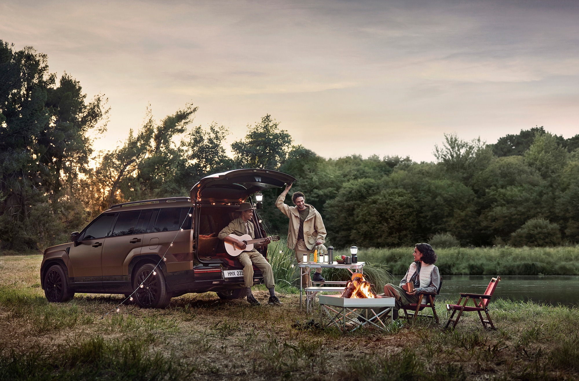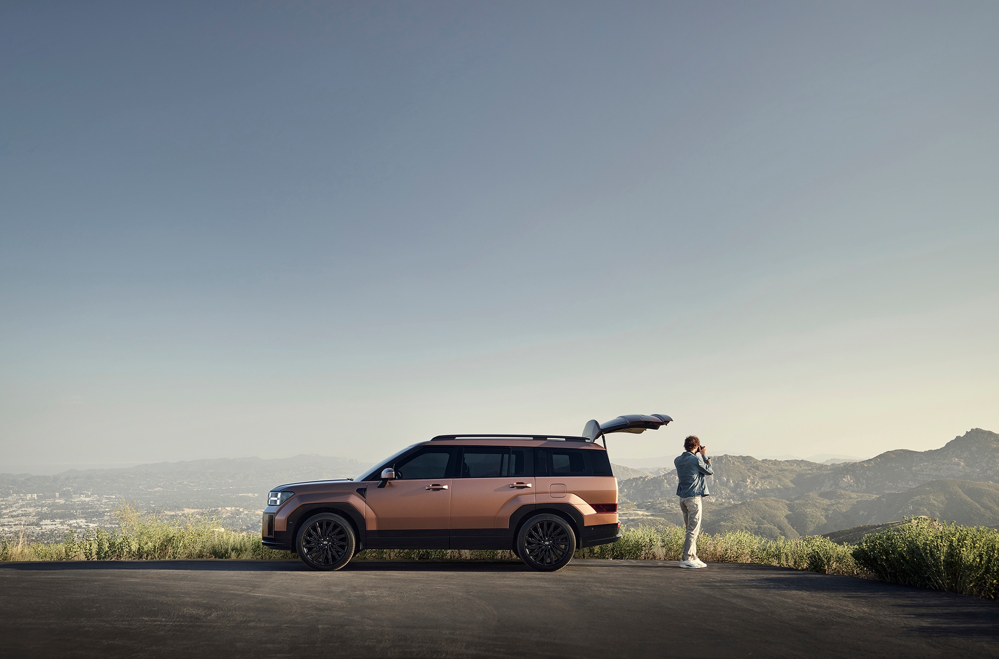 현대차의 엠블럼을 재해석한 전∙후면의 H 라이트를 비롯, 대형 테일게이트로부터 만들어진 독특한 측면 형상과 날카로운 볼륨감의 펜더, 21인치 대형 휠 등이 어우러지며 강인하면서도 견고한 느낌을 극대화한다. 이와 함께 차량 좌∙우 C필러에 ‘히든타입 어시스트 핸들’을 적용해 보다 편리하게 루프랙을 활용할 수 있게 했다.