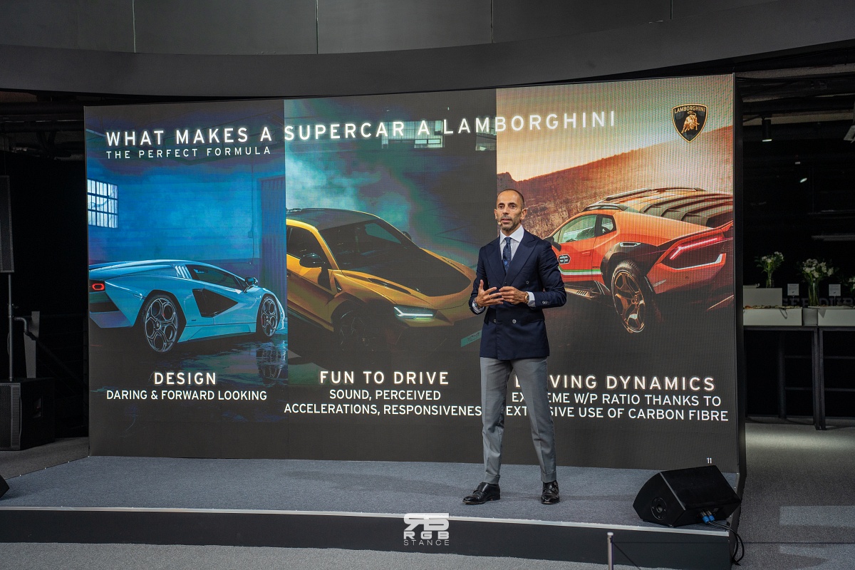 차량 전시 외에도 2층에는 고객이 원하는 다양한 외관 색상, 인테리어, 마감 및 세부 사항까지 주문 제작할 수 있는 맞춤형 커스터마이징 프로그램인 ‘애드 퍼스넘(Ad Personam)’ 존이 마련됐다. 또한 중앙 무대 뒤편으로 람보르기니의 공식 라이프스타일 파트너사인 세계적인 하이퍼워치 브랜드 ‘로저드뷔(Roger Dubuis)’의 전시 공간이 마련됐으며, 이탈리아의 럭셔리 바이크 브랜드 ‘3T바이크’와 람보르기니가 함께 디자인과 혁신에 대한 열정을 기념하기 위해 특별 제작한 ‘스트라다X오토모빌리 람보르기니 바이크’가 전시된다. 뉴욕에 본사를 둔 프리미엄 오디오 기기 분야의 리더, ‘마스터 앤 다이나믹(Master & Dynamic)’ 특별 부스도 마련돼 고객들에게 럭셔리의 세계로의 몰입감있는 경험을 선사하고 있다.