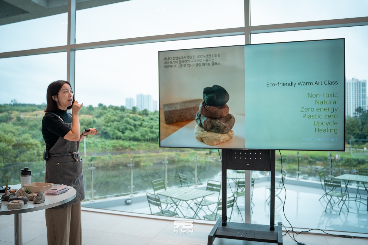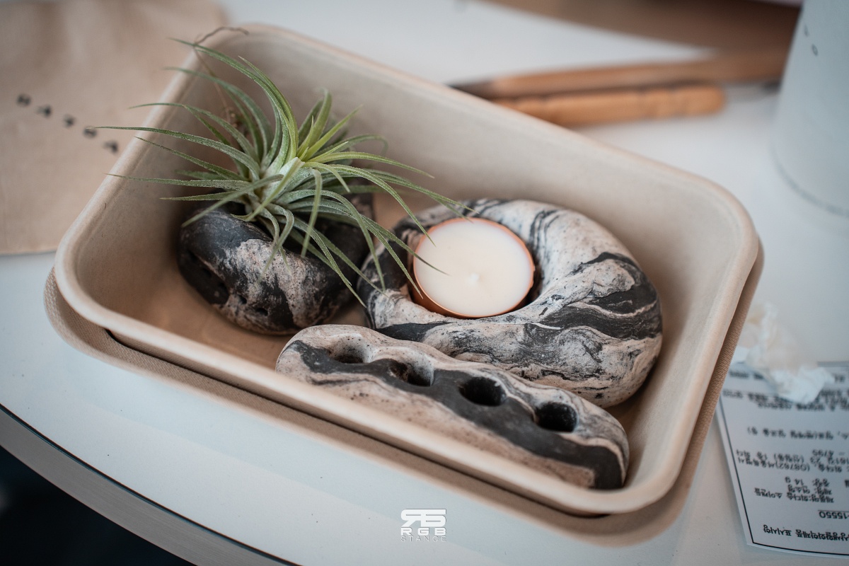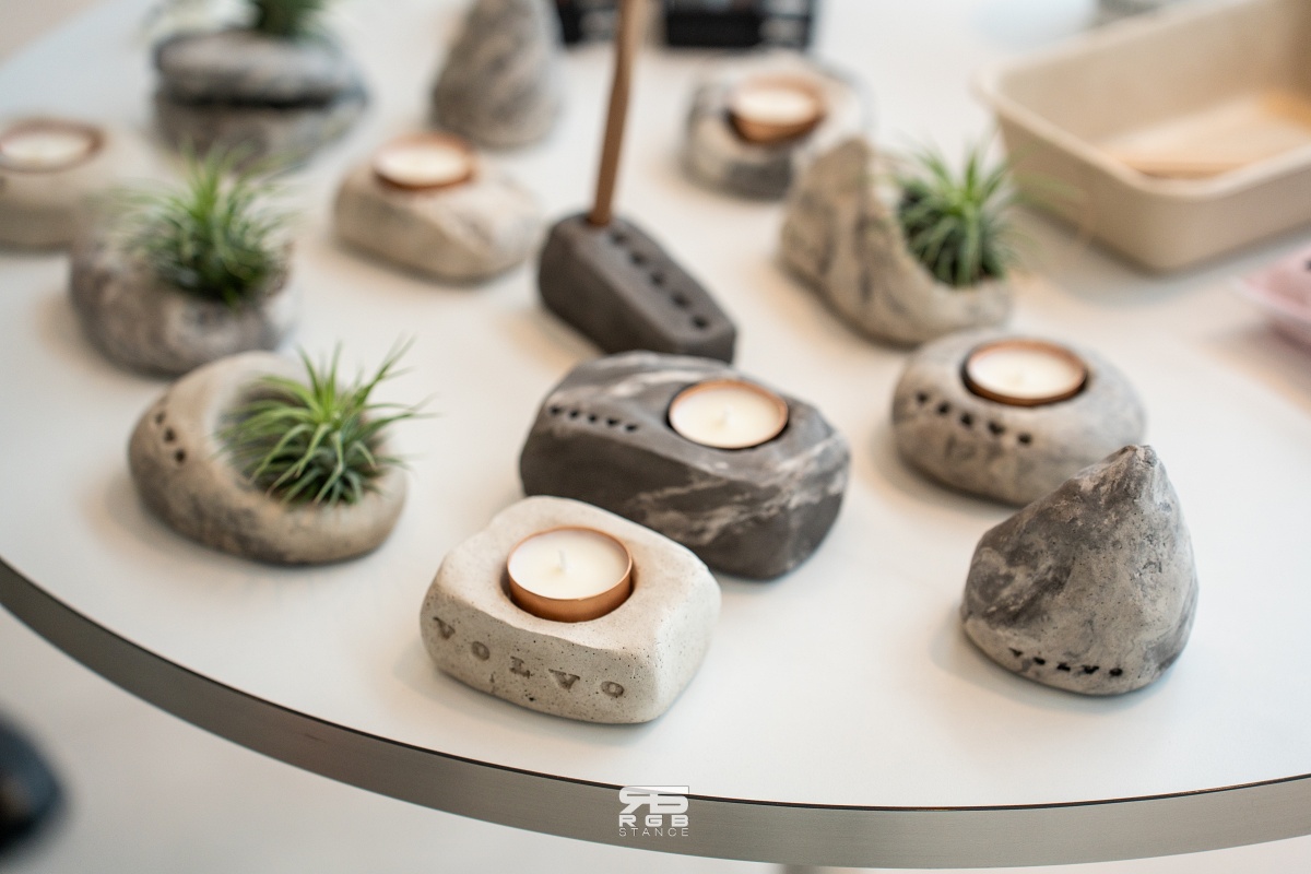 목적지에 도착해서는 잠시 휴식을 취하면서 침엽수에서 추출한 천연 섬유질로 만든 에어 드라이 클레이로 만드는 업사이클링 웜아트 클래스에 참여해봤다. 아이가 만져도 아무 문제 없는 소재들로 클레이를 반죽해 만든 일종의 ‘스톤 오브제’ 인데, 볼보가 추구하는 친환경 및 일상의 여유로움을 잘 보여주는 아트 클래스였다. 클레이를 반죽해 화분으로 만들거나, 단순한 오브제 혹은 연필꽂이 등으로 원하는 모양, 컬러대로 만들 수 이는 체험행사였다.
