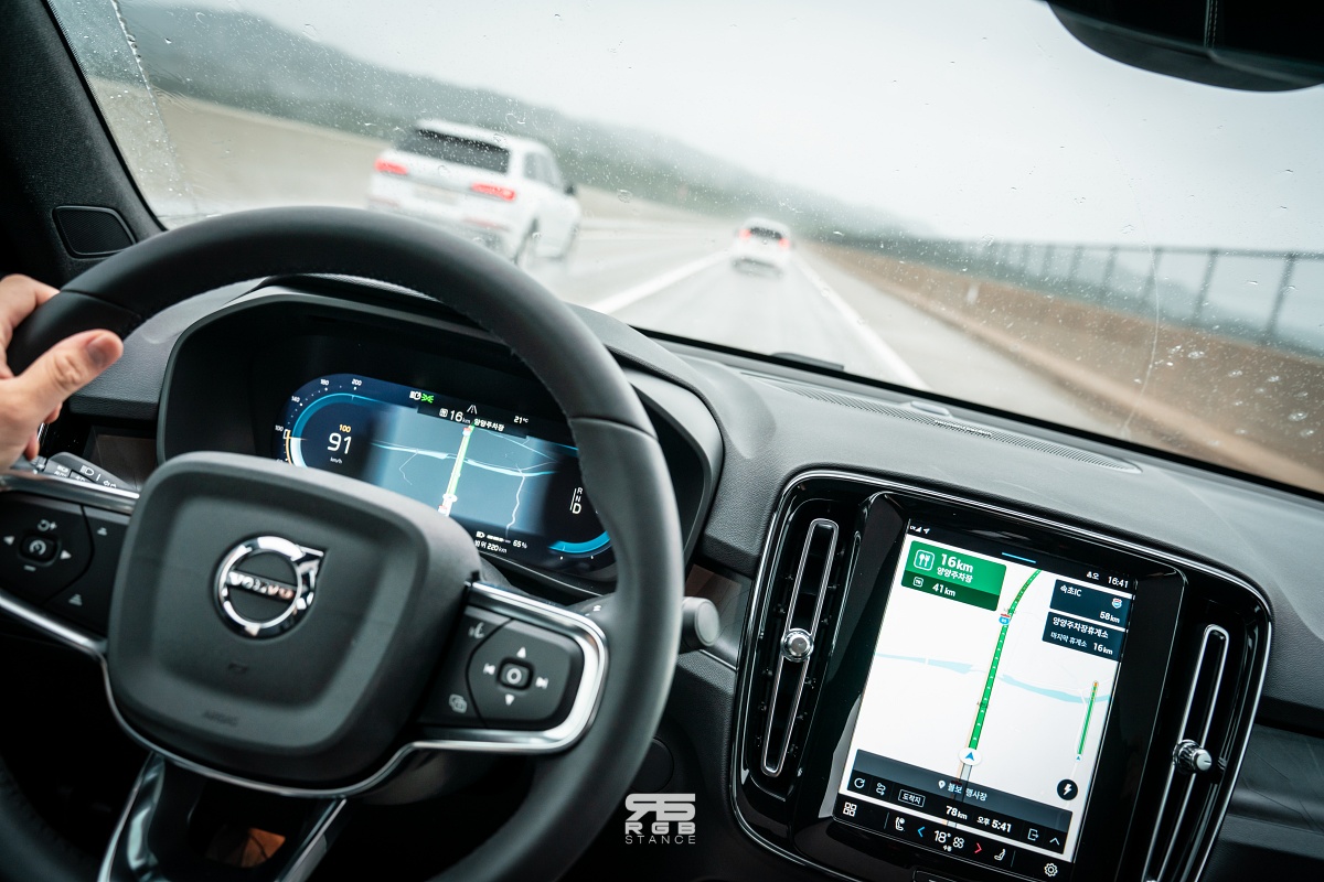 역시나 C40 리차지 역시 티맵 2.0 을 사용해 차량 출발시 “아리야, 볼보 행사장 안내해줘” 라고 하니, 알아서 경유지가 포함된 목적지와 음악을 틀어주는 루틴 기능을 보여주었다. 이 외에도 에어컨 온도, 풍량까지 음성으로 제어가 가능하며, 뉴스를 읽어달라고 하는 것 역시 말이 통하니 주행 중 버튼을 조작하느라 전방에서 시선을 뗄 필요가 없어 더욱 안전한 주행이 가능했다.