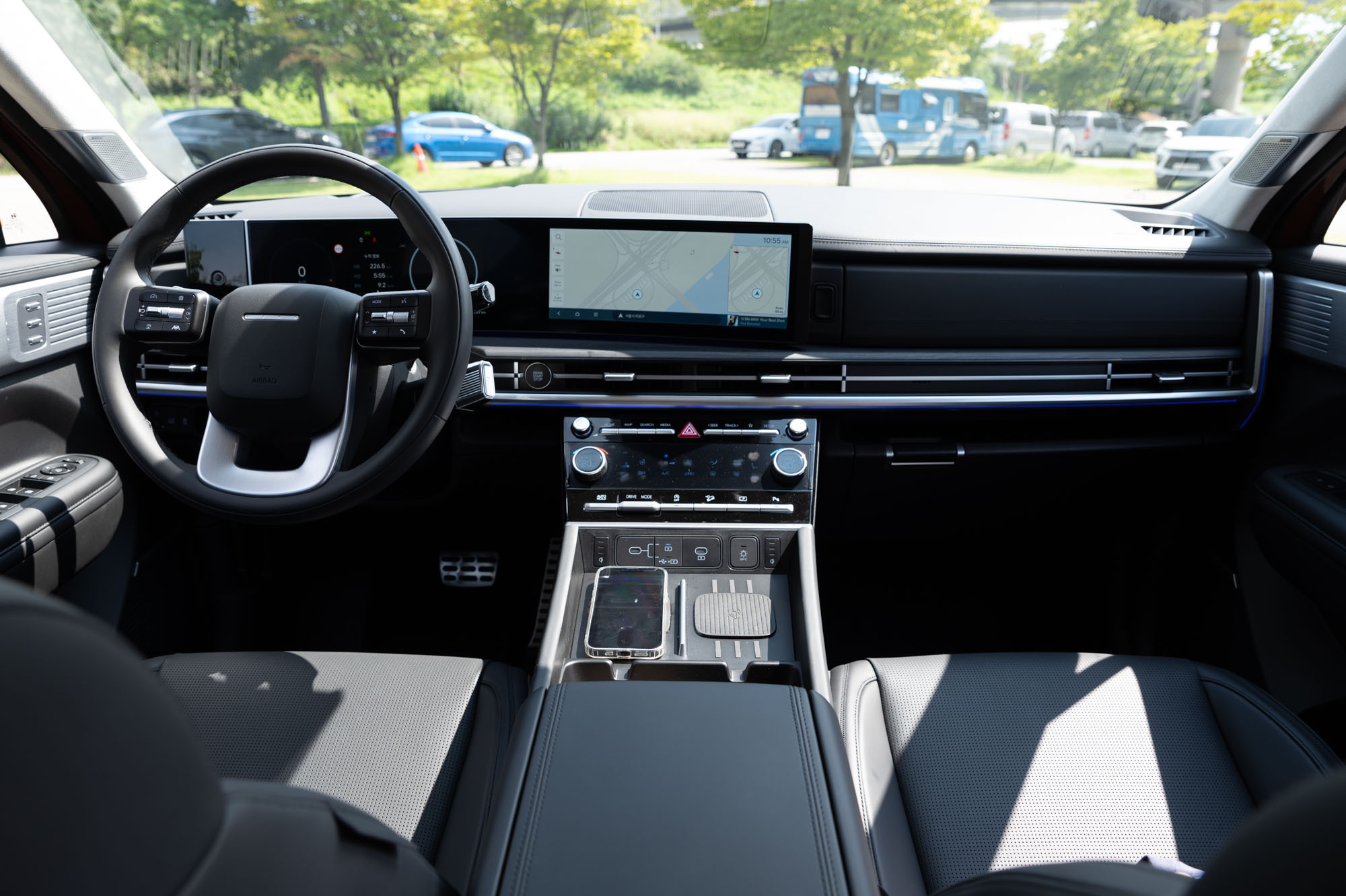이 외에도 사용자 중심의 편의사양을 다양하게 갖추고 있는데, 새롭게 적용된 양방향 멀티 콘솔은 보통 1열에서만 열리던 것과 달리, 2열에서도 바로 열 수 있어 사용하기 편하며, 용량도 깊고 큰 편이다. 여기에 스마트폰 듀얼 무선충전 기능과 글로브박스 상단에 UV-C 자외선 살균 멀티트레이를 장착하고, 디지털 센터미러를 장착하는 등 편의성을 더했고, 220V 를 통해 차박캠핑에서도 활용할 수 있는 편의사양들이 인상적이다.