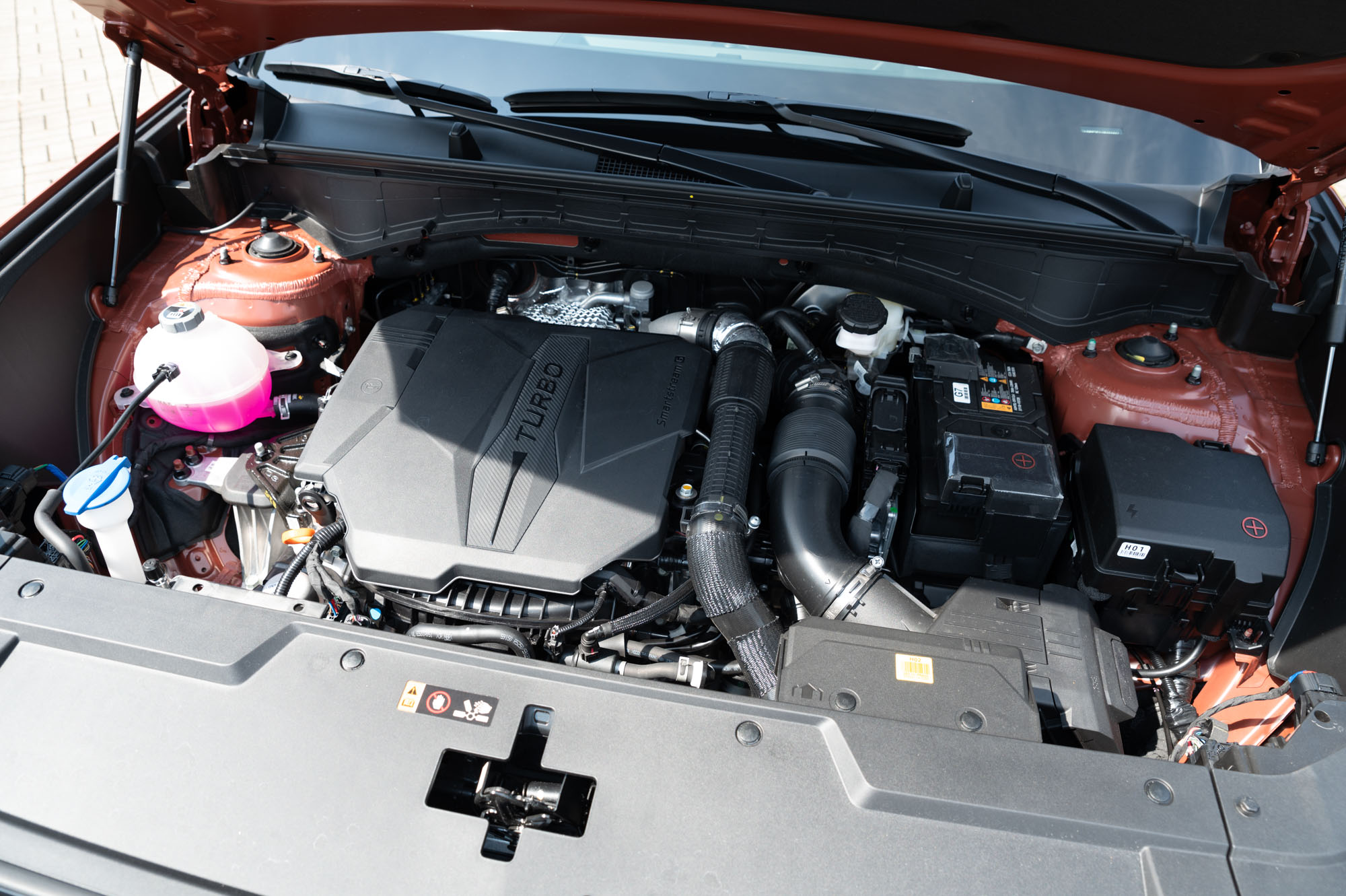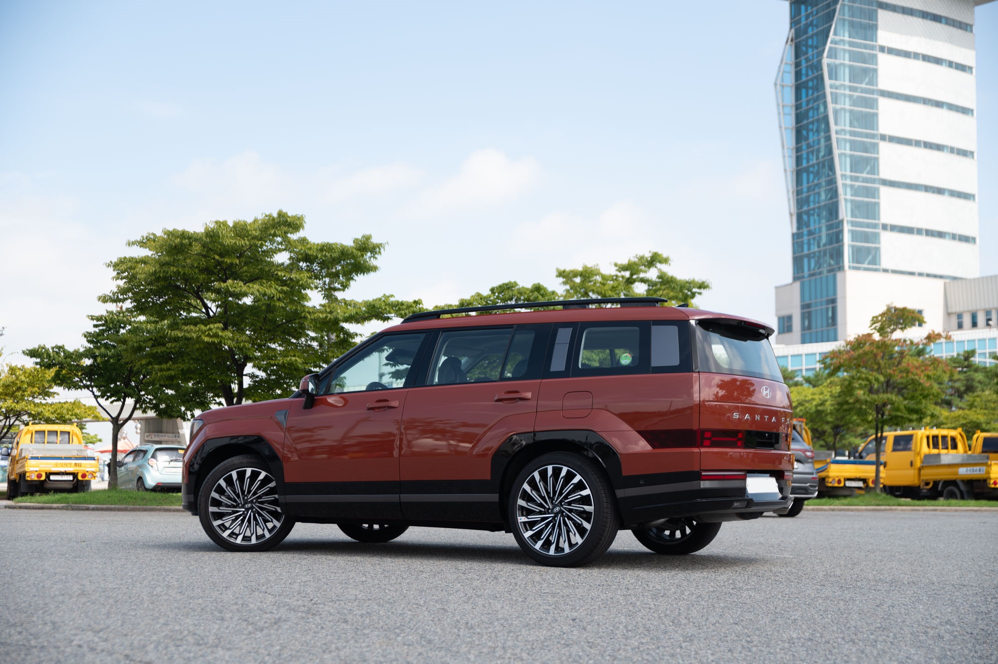 2.5 가솔린 터보 엔진과 8단 DCT 로 281마력, 43.0kg.m 의 토크를 보이며, 앞 뒤 무게배분이 거의 6:4 정도로 꽤 괜찮은 수준으로 주행밸런스도 좋은 편이다. 물론, 아직 개선할 점은 있지만, 일반적인 레저활동을 즐기기거나 출퇴근 등 패밀리카의 다목적 용도로 사용하기에도 큰 아쉬움은 없으며, 4세대 싼타페와 비교해 조금 더 단단해진 느낌이다. 약간 거친 비포장이나 일반 도로 모두 이정도면 만족스러운 성능인데, 21인치 휠이 아닌, 20인치나 19인치라면 승차감은 조금 더 편안할 것 같다. 그 외에는 거의 국민 SUV 라 불러도 손색 없을 정도로 공간, 편의성, 안전사양, 주행성능 등 크게 모나지 않아 만족스럽다.