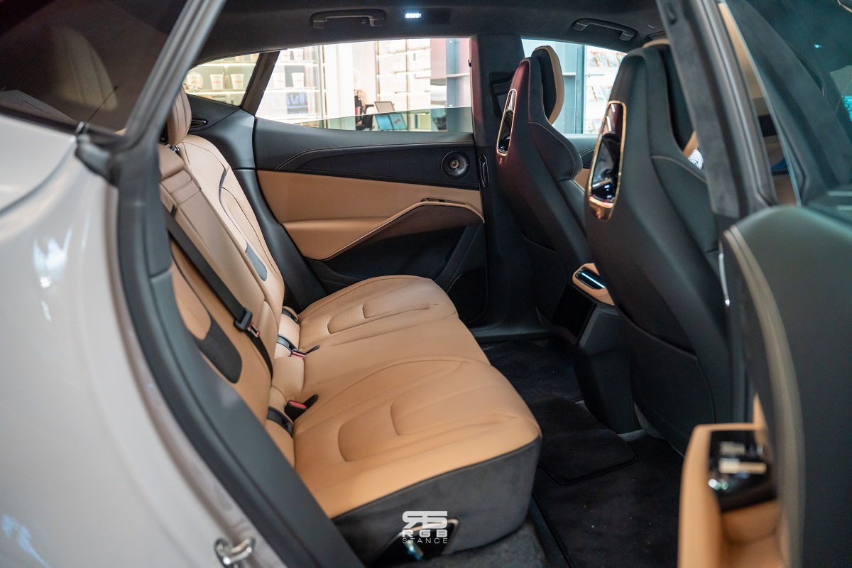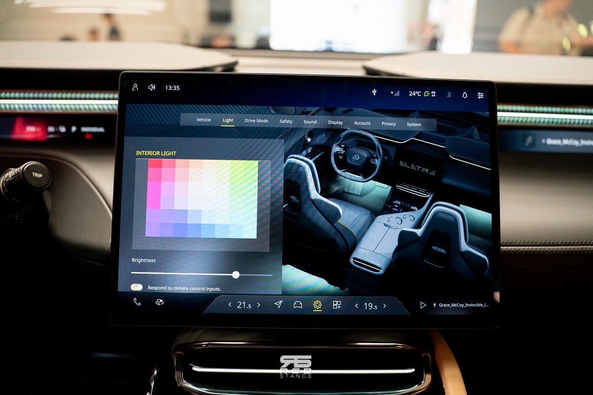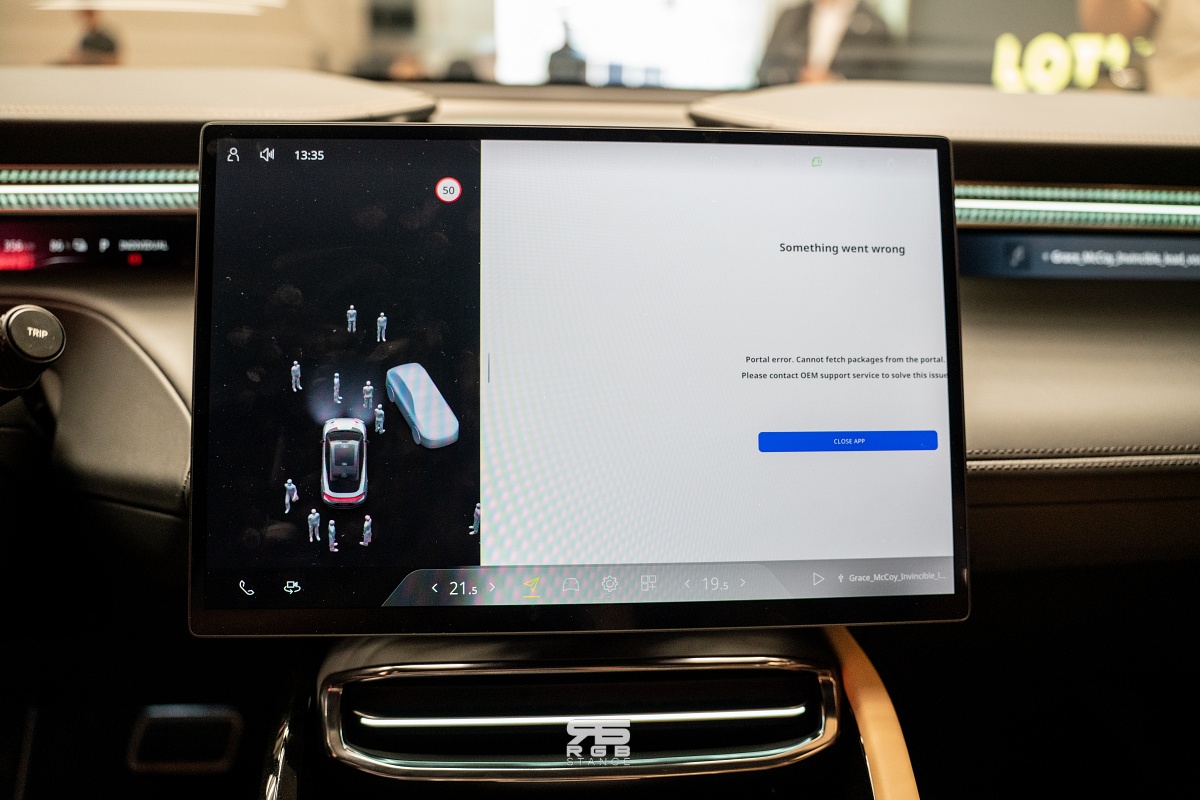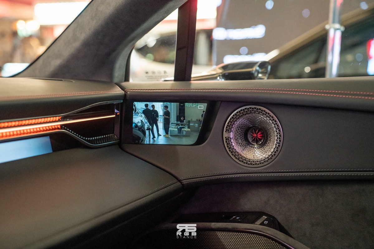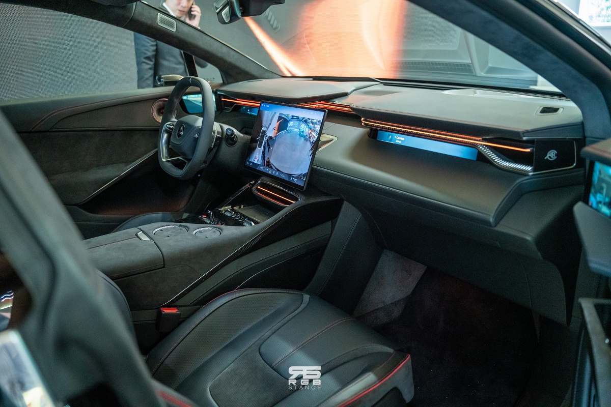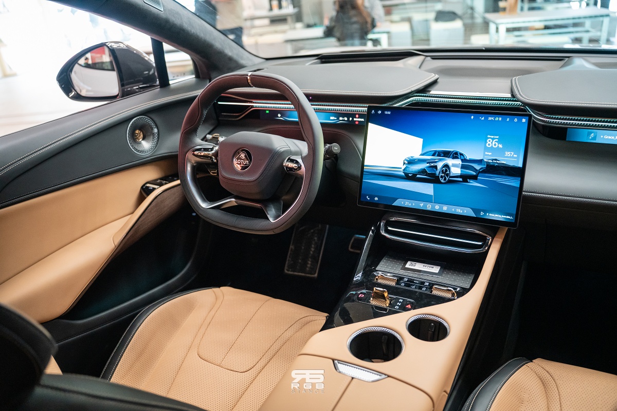 실내로 들어와보면 더욱 놀라게 된다. 드라이빙을 위한 것을 제외하곤 아무것도 없던 로터스와 달리, 럭셔리한 분위기와 구성들에 놀라게 되는데, 고급스러운 가죽과 스웨이드로 장식된 실내는 넓고 안락해졌으며, 슬림형 15.1인치 HD OLED 터치스크린을 통해 선명하고 깨끗한 이미지를 보여주고 있고, 대화형 피드백 기반의 OS 가 적용되어 직관적인 운전 경험을 느끼게 해준다. 스마트폰 무선충전 기능은 물론, 스티어링휠 뒷쪽의 12.6인치 HD OLED 계기판은 증강현실 기능을 갖춘 29인치 HUD 와 함께 운전을 더욱 안전하게 할 수 있도록 도와주며, 파노라믹 글라스 루프는 디지털 기술을 적용해 10단계의 투과율 조절이 가능하다.
