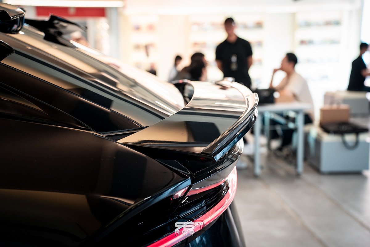 특히, 가변식 리어 스포일러는 스포일러가 18° 각도로 배치될 때 공기저항 계수는 최대 1.8%까지 감소한다. 동시에 다운포스는 최대 60kg 까지 증가한다. 각도가 32°로 변하면 공기저항 계수가 1.8%로 약간 늘어나지만 다운포스는 112.5kg 으로 두 배 이상 증가한다. 34°까지 완전히 전개되면 최대 제동력을 보조해 감속을 지원한다는 점이 그냥 SUV 가 아닌, 고성능의 하이퍼카 SUV 것을 알게 해준다.