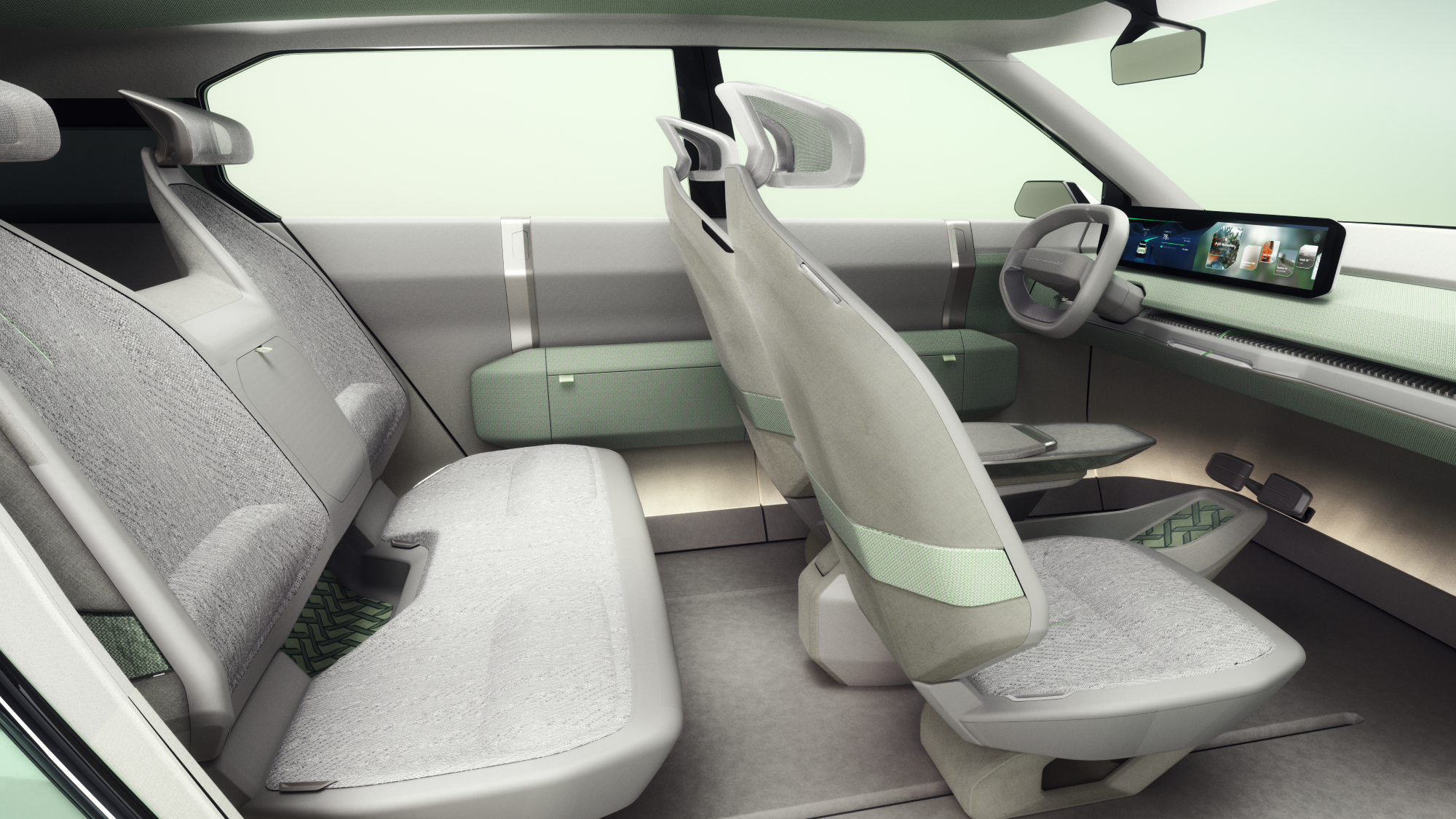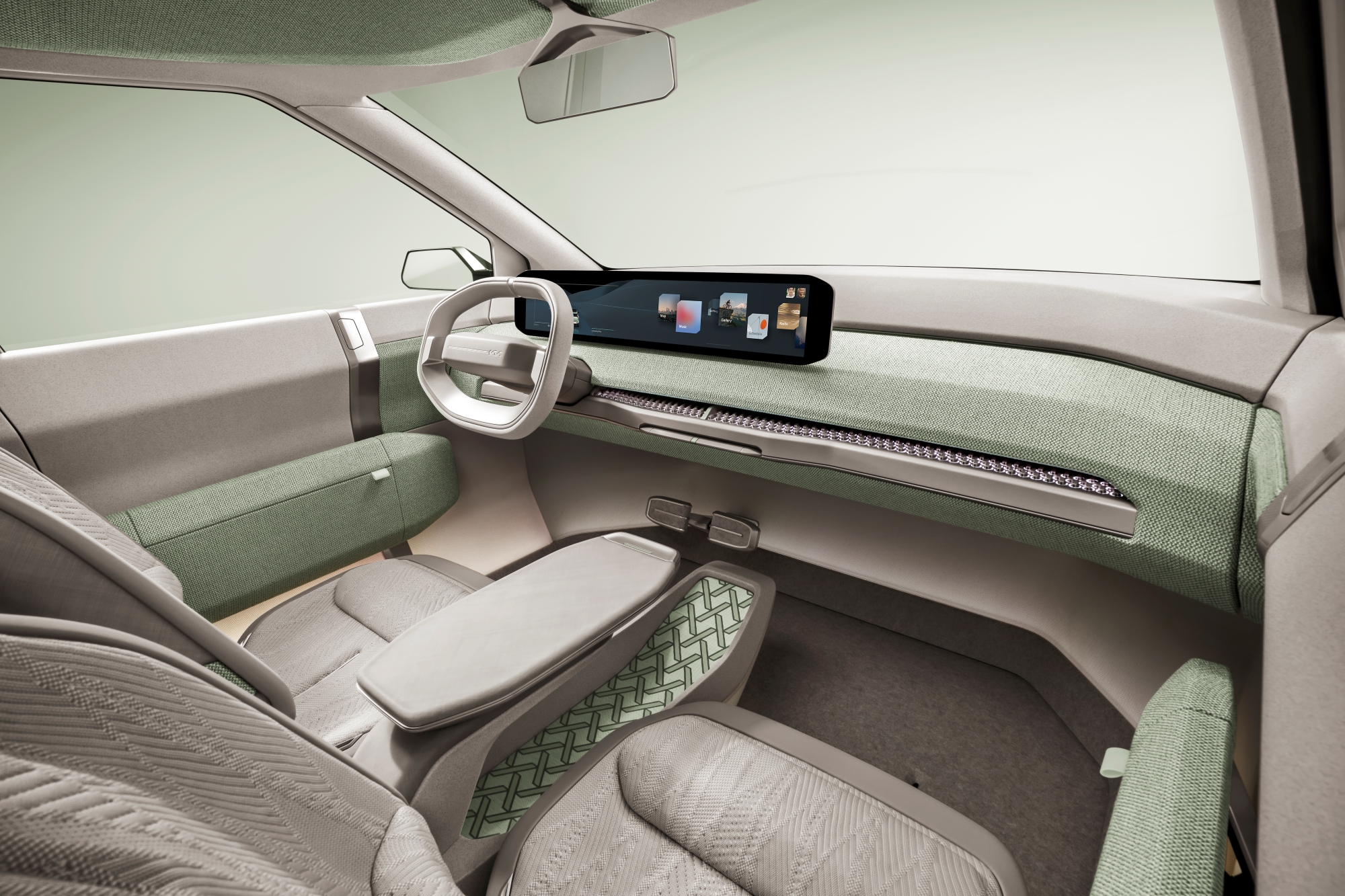 EV4 컨셉의 실내는 넓고 깔끔한 수평형 구조로 세련된 요소를 보이며, 운전자 지향적 공간이 인상적이다. 센터페시아에 수납할 수 있는 공조 조작 패널을 배치하는 한편, 패턴을 바꿀 수 있는 핀 스타일 에어벤트가 상당히 독특하다.