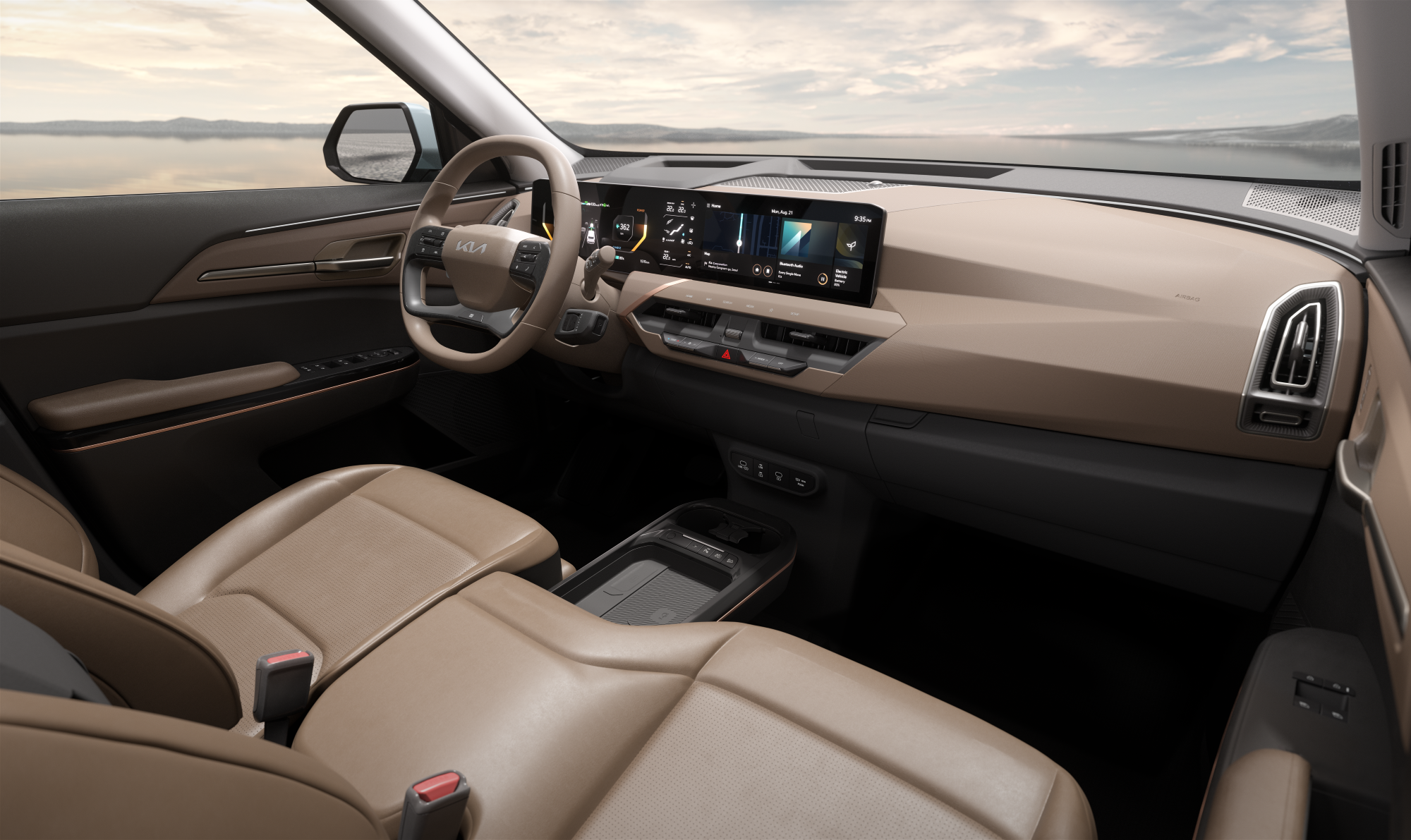 EV3 의 실내는 고객 취향과 생활방식에 맞춰 변경할 수 있어 최적의 사용성을 제공하는데, 전체적으로 깔끔한 면과 수직 수평 요소가 조화를 이루고, 무드 조명을 통해 감성을 더하고 있다. 센터콘솔에 적용한 미니 테이블은 길이와 위치, 각도 등을 변경할 수 있어 다양한 활용성을 보이고, 시트 쿠션을 위로 접을 수 있는 2열 벤치 시트는 실내 V2L 기능을 통해 전동 자전거 등을 충전할 수 있어 새로운 모빌리티 경험을 제공할 수 있다.