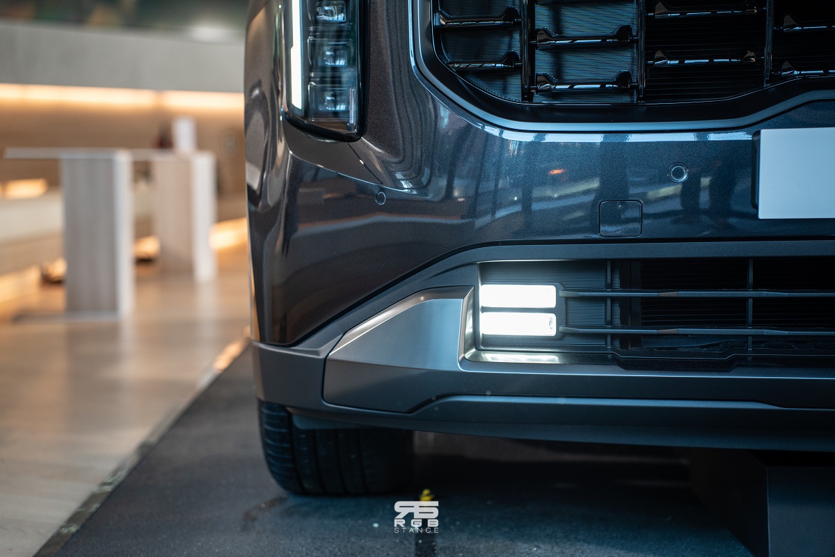 그래비티와 시그니처 트림은 프론트 그릴부터 차이가 난다. 시그니처 트림은 격자 모양의 라디에이터 그릴을 사용하고 있다는 점이 특징이며, 휠은 19인치 휠이 장착되어 있었다. 18인치도 있지만, 옵션을 선택하다 보면 대부분 19인치 모습이다. 참고로 하이브리드는 18인치 전용 휠이 적용된다.