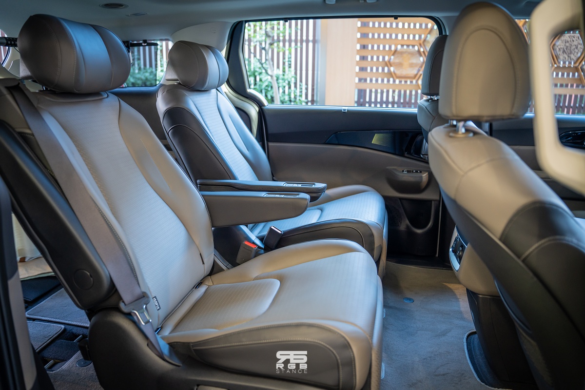 실내의 경우에는 큰 차이가 없는데, 기존 카니발과 비교해 12.3인치의 클러스터와 인포테인먼트 시스템이 연결된 파노라믹 커브드 디스플레이로 수평형의 와이드한 느낌을 강조한 것과, 엠비언트 라이트를 통해 입체감과 고급감을 표현한 것이 특징이다. 그리고, 암레스트에 UV-C 살균기능이 적용되어 있다.