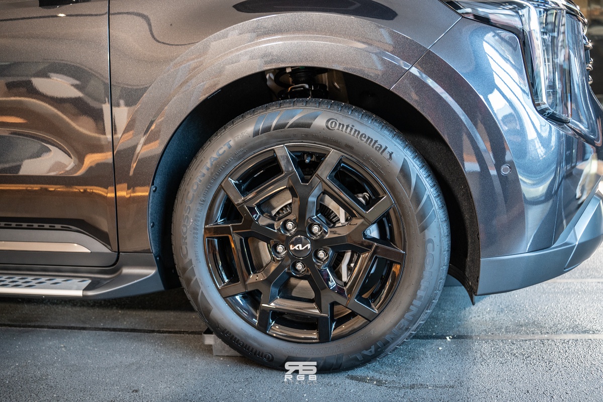 그래비티와 시그니처 트림은 프론트 그릴부터 차이가 난다. 시그니처 트림은 격자 모양의 라디에이터 그릴을 사용하고 있다는 점이 특징이며, 휠은 19인치 휠이 장착되어 있었다. 18인치도 있지만, 옵션을 선택하다 보면 대부분 19인치 모습이다. 참고로 하이브리드는 18인치 전용 휠이 적용된다.