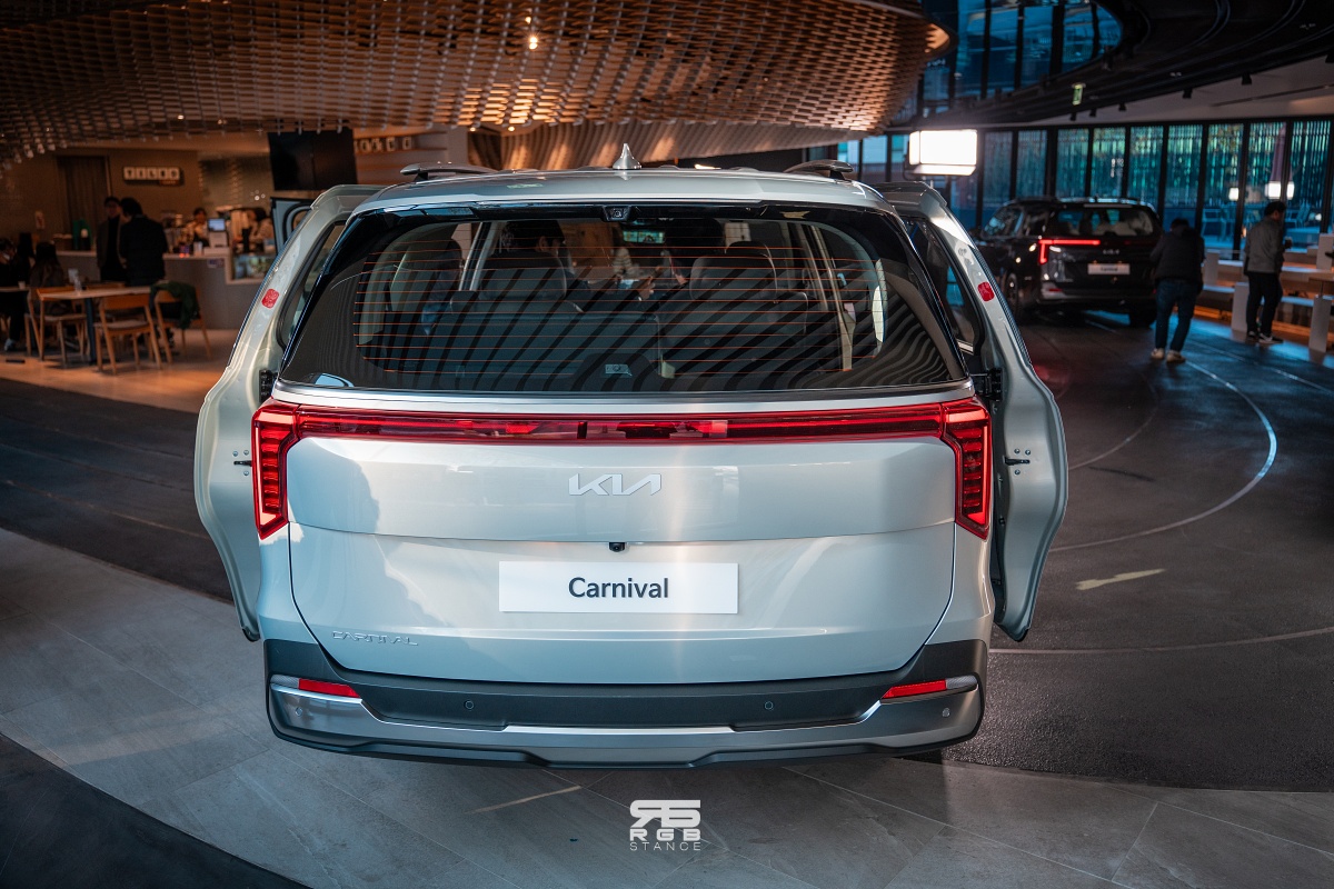 이제 11인승 카니발은 없어졌고, 9인승과 7인승 모델들이 각각 있었는데, 공통적으로 ‘스타맵 시그니처 라이팅’ DRL 이 적용되어 미래지향적인 모습을 보여주고 있었고, 리어 콤비네이션 램프 역시 전면부와 비슷한 디자인으로 구성되어 있었다. 그리고, 트렁크 손잡이는 히든타입으로 변경해 더욱 깔끔한 테일게이트를 보여주는 점이 특징이다. 이 외에 측면부의 모습은 큰 변화가 없지만, ‘시그니처’ 와 ‘그래비티’ 의 차이는 존재했다.