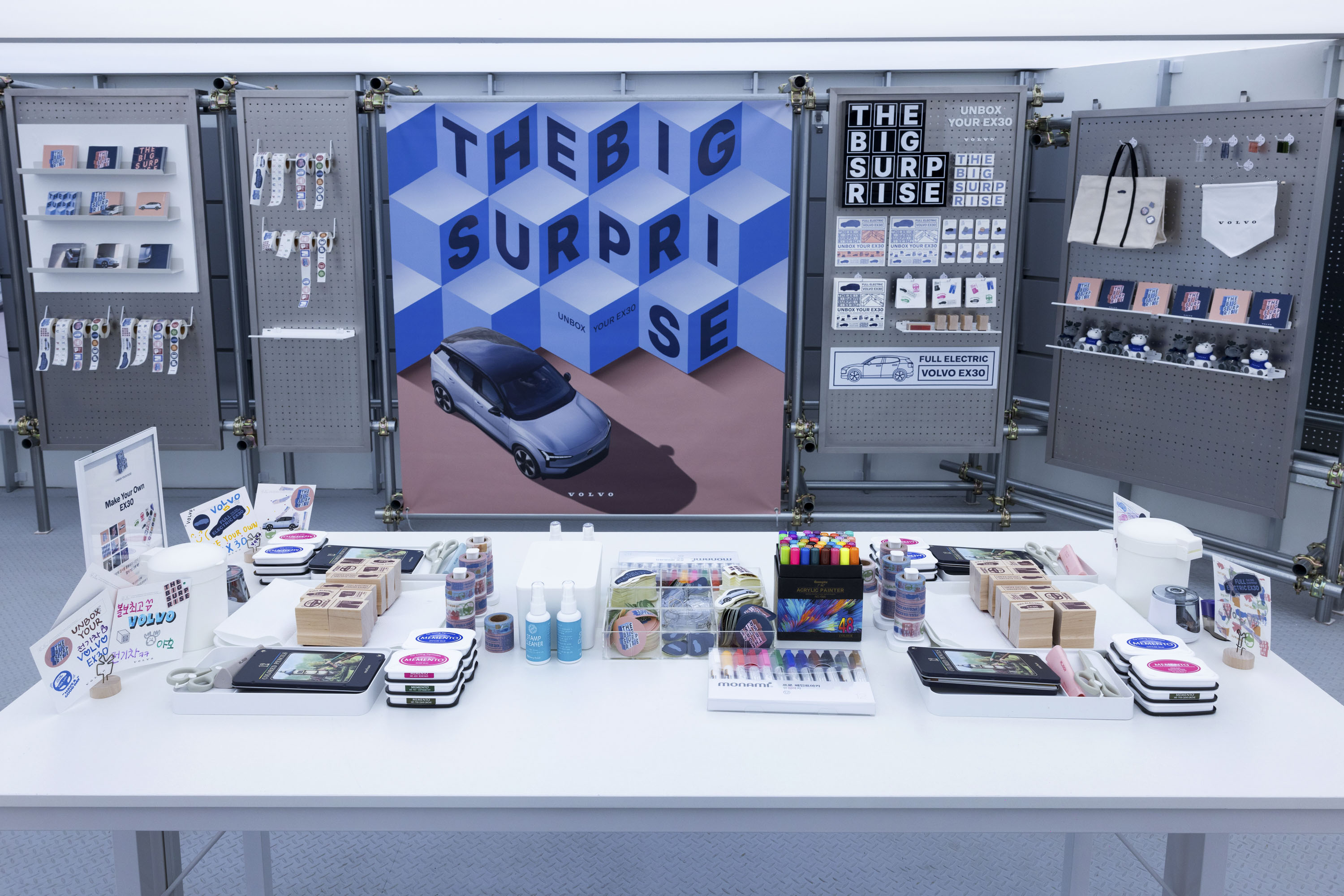 EX30 언박싱존인 ‘Unbox the Surprise Box’에서는 EX30 실제 차량을 비롯해, 스웨덴 본사에서 온 EX30 인테리어 속 친환경 소재를 전시한 공간, AR을 체험할 수 있는 공간 등이 마련돼 EX30의 다양하고 놀라운 매력을 직접 느낄 수 있게 만들었다.