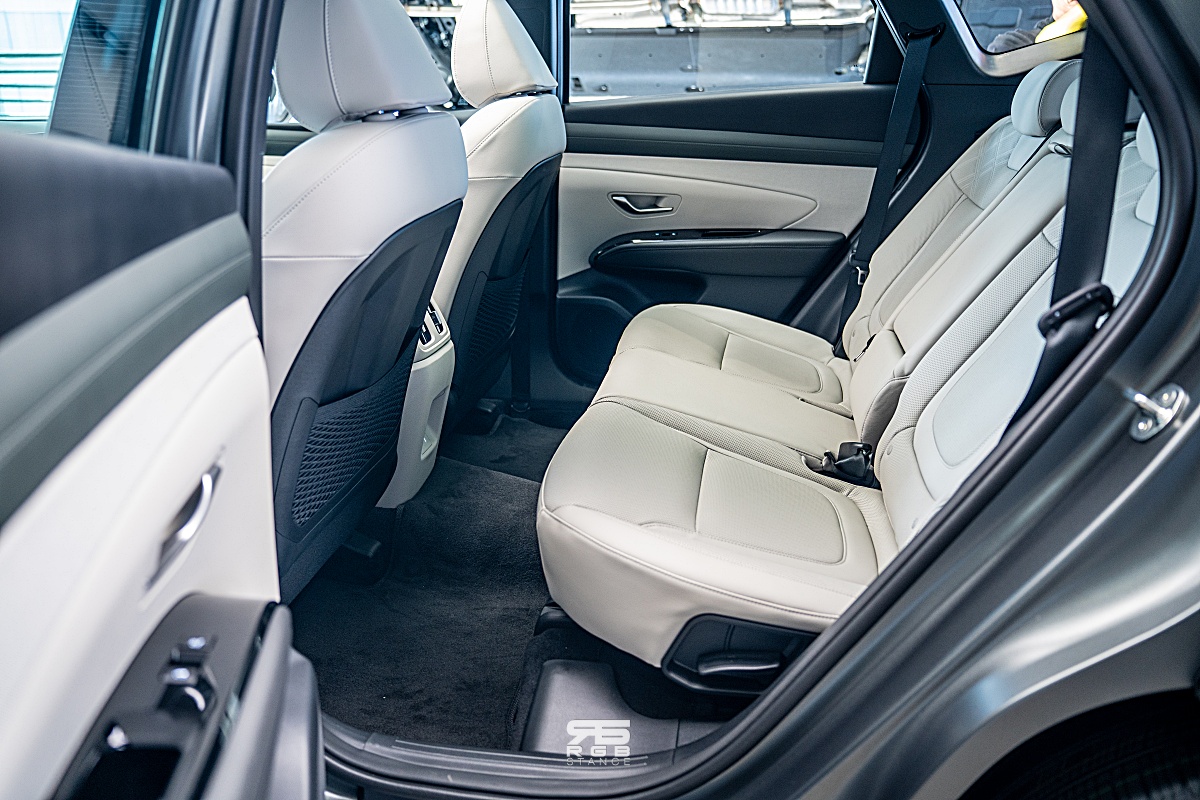 더 뉴 투싼은 주행감성을 업그레이드 했는데, 실시간으로 노면을 파악해 최적의 주행 모드를 자동으로 선택하는 오토 터레인 모드와 고속 주행 중 강풍 발생시 조향 및 제동 제어를 통해 고속 주행 안정성을 향상시키는 횡풍 안정성 제어 등의 첨단 주행 기술을 탑재한 것과 함께 정숙성을 위해 흡차음재를 새롭게 보강했다. 그리고, 전륜 스트럿에 2방향 다이나믹 댐퍼를 통해 로드노이즈를 줄이고 이중접합 유리를 1열 측면유리에까지 적용시켰다. 그런데, 하이브리드는 여기에서 조금 더 특별한 기능들이 추가되어 있다. 더 뉴 투싼을 산다면 하이브리드를 추천하는 이유가 되기도 한다.