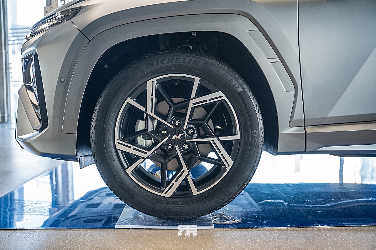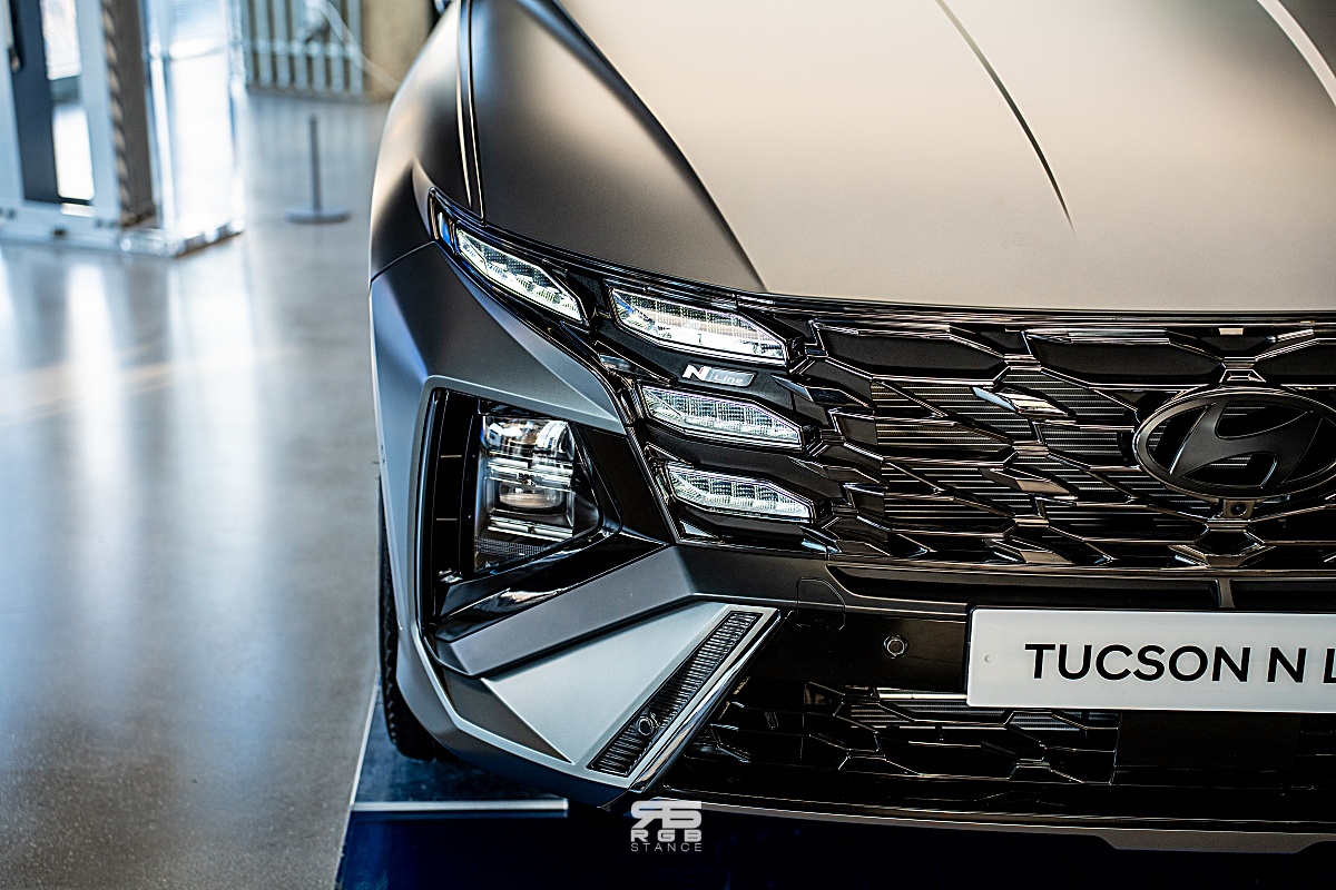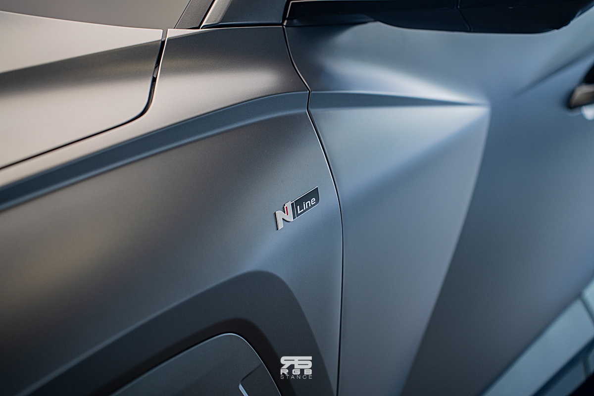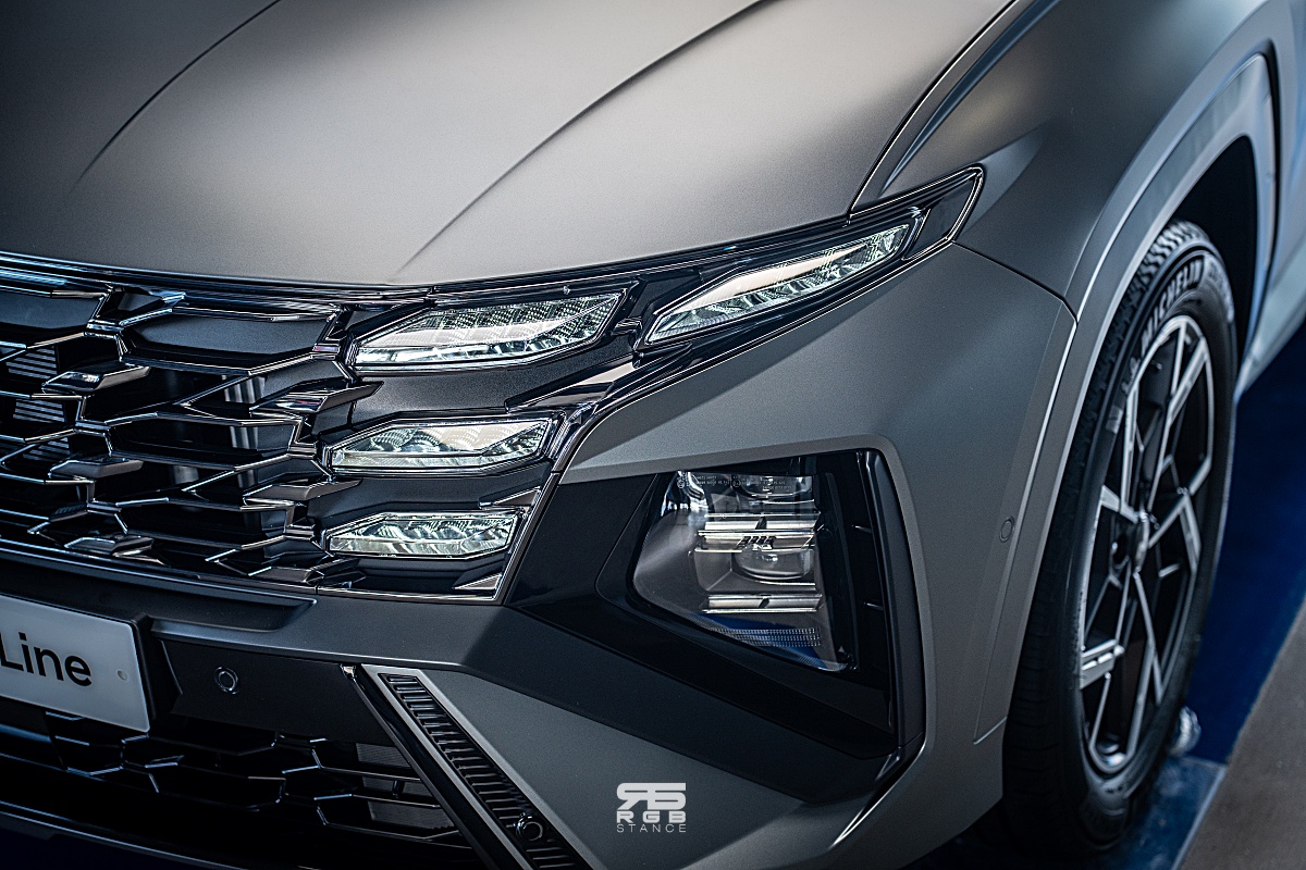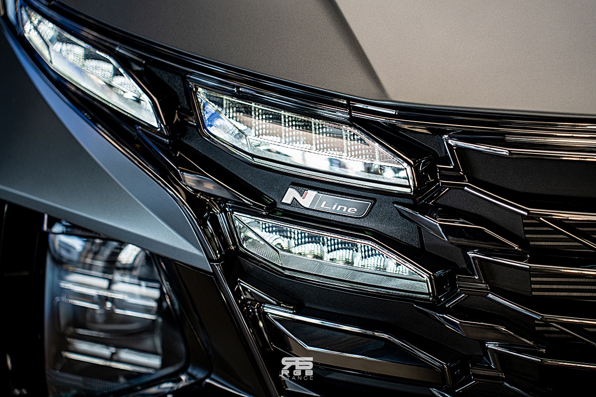 전체적으로 각진 형상으로 다듬어진 전면부는, N 라인 모델에는 N Line 배지가 붙어있으며, 스키드플레이트와 프론트 그릴이 더욱 스포티하고 역동적인 디자인을 보이고 있다. 그리고, N 라인 전용 19인치 알로이 휠과 바디컬러의 사이드 가니쉬와 바디클래딩에서 디자인적 차이를 보인다.