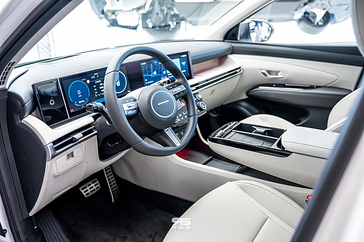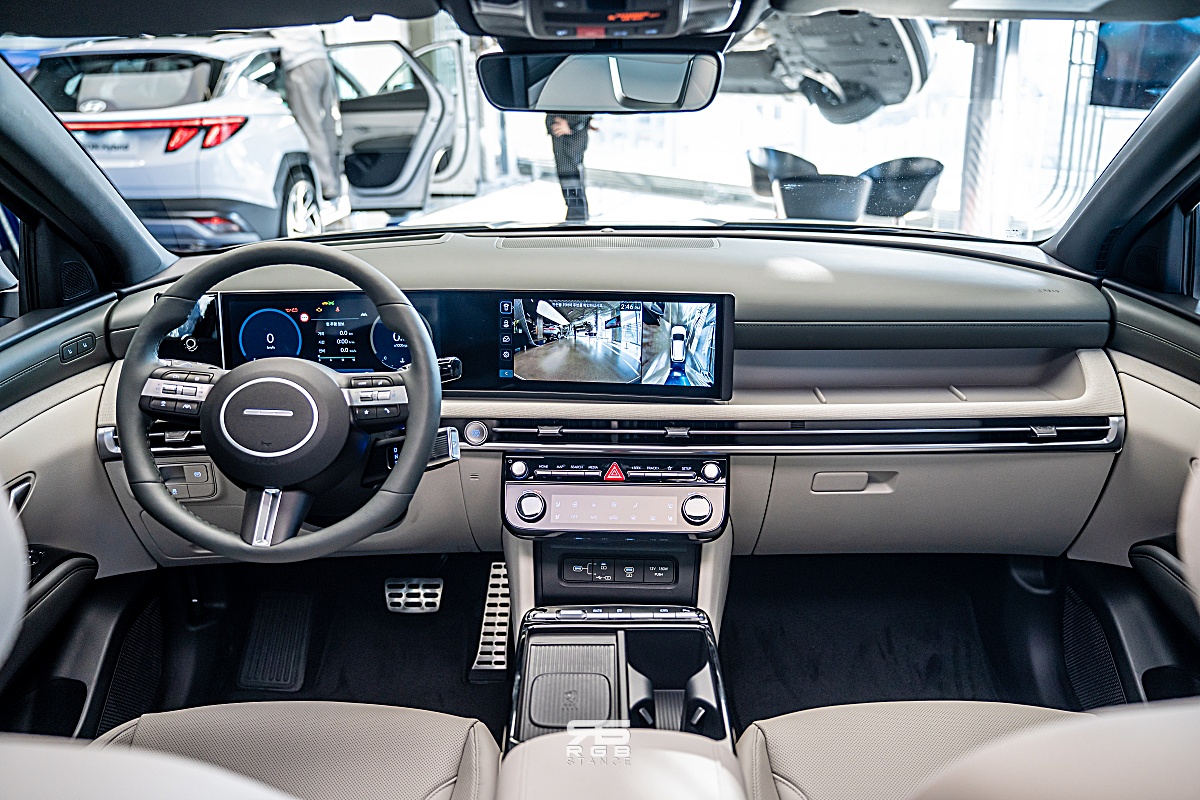 실내는 새롭게 12.3인치 클러스터와 인포테인먼트 시스템이 매끄럽게 연결된 파노라믹 커브드 디스플레이가 와이드하고 고급스러운 느낌을 주며, 차세대 인포테인먼트 시스템 ccNC 가 적용되어 무선 소프트웨어 업데이트, 블루링크 스트리밍 서비스 등 첨단 인포테인먼트 기능을 제공해주는 것과 함께, 센터콘솔에 있던 변속버튼이 ‘컬럼 타입’ 전자식 변속 레버로 바뀌면서 공간을 더욱 효율적으로 활용할 수 있도록 바뀌었다.