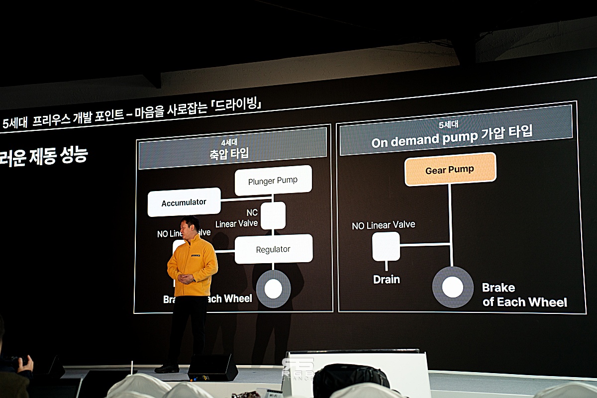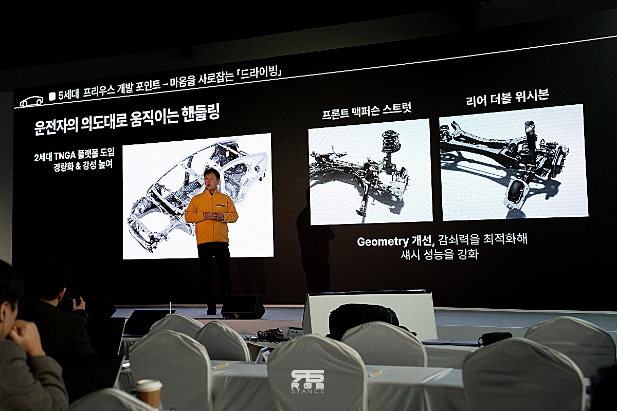 그리고, 5세대 프리우스는 ‘드라이빙’ 에 집중했는데, 4세대 프리우스에 비해 다소 연비가 조금 낮아지긴 했어도 여전히 뛰어난 연비를 보여주는데, 부드러운 제동을 위해 새로운 ‘액티브 하이드롤릭 부스터 G-브레이크’ 를 탑재해 높은 안정성과 제동성능을 보여주고, 핸들링 감성을 위해 프론트에는 맥퍼슨 스트럿, 리어에는 더블 위시본을 사용하고 있다,