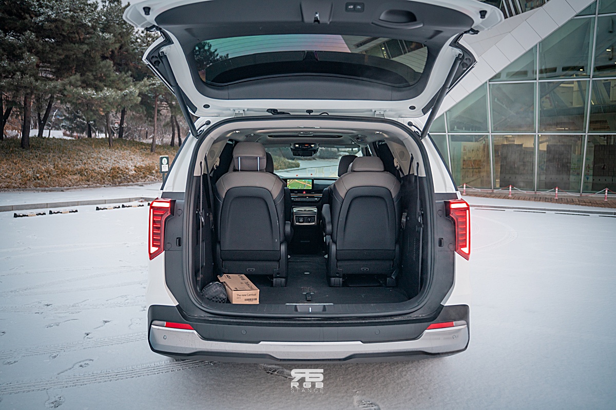 실내 공간이야 말할 것도 없다. ‘카니발’ 이니깐 말이다. 1열도 넓은 폭 덕분에 여유롭고, 2열, 3열까지도 상당히 여유로운 공간을 보여준다. 괜히 아빠들의 자동차라고 불리는게 아니다. 9인승의 경우에는 맨 뒤에 접혀있는 4열 시트를 이용하면 되지만, 사실상 쓰기 어렵다. 9인승은 그냥 버스전용차로를 운행하기 위한 꼼수 정도로 이해하면 된다. 실내는 크게 바뀐 것은 없다. 다만 시트 컬러가 오염이 잘 되지 않는 컬러로 바뀌어 관리가 쉽다는 것 정도가 있는데, 주행품질은 바뀌었다.