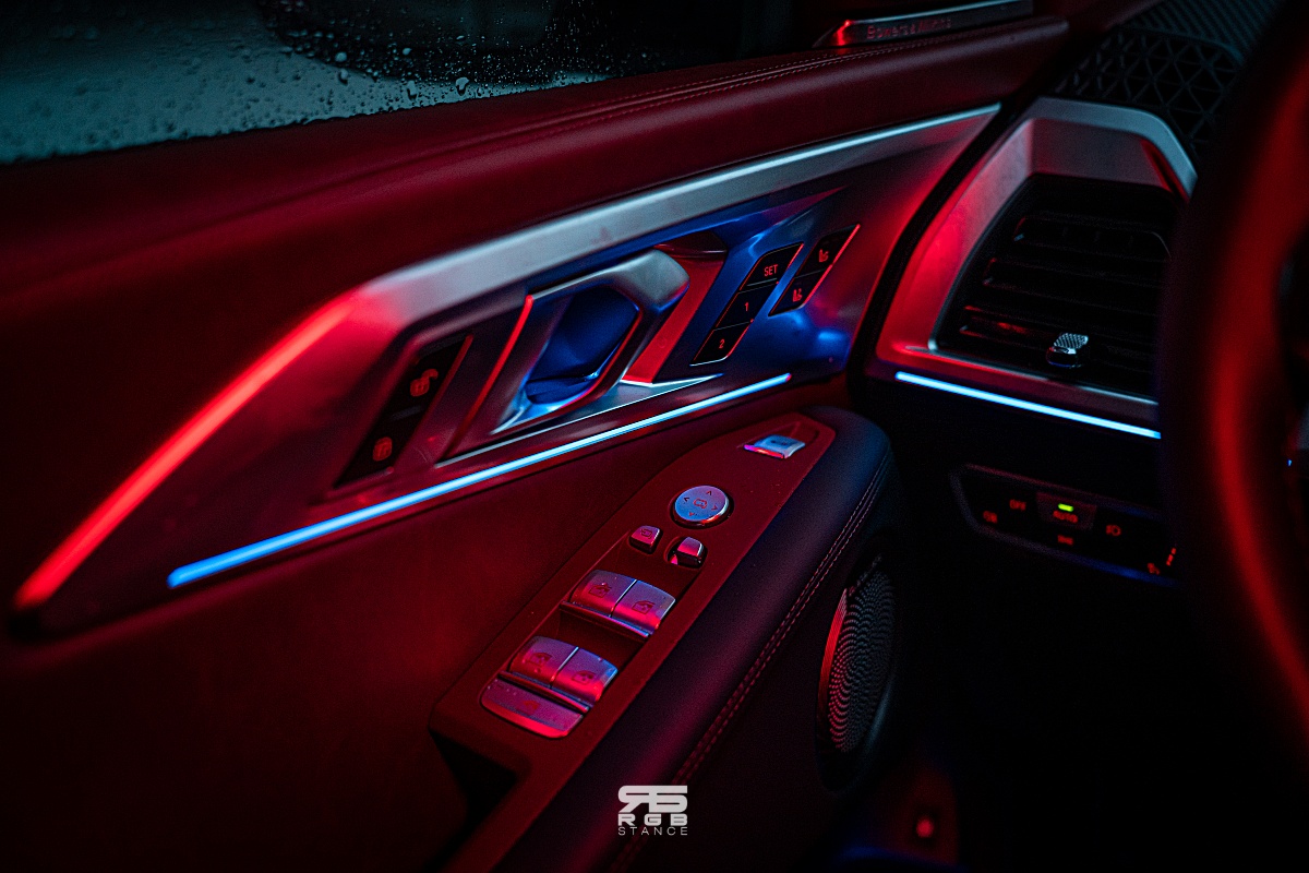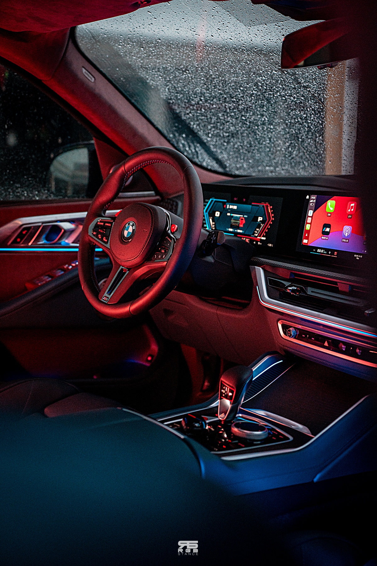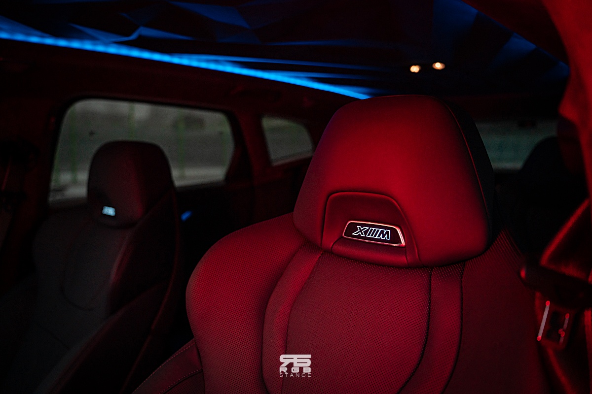BMW XM 의 실내로 들어오면 삼차원 프리즘 형태의 일루미네이티드 헤드라이너가 다양한 색상을 보여주며 환상적인 느낌을 만들어준다. 그리고 체형에 맞춰 완벽한 조절이 가능한 편안한 시트는 고급스러운 가죽과 함께 스티칭 패턴 및 독특한 색감으로 미래지향적인 느낌을 강조하며 럭셔리함을 연출해준다.