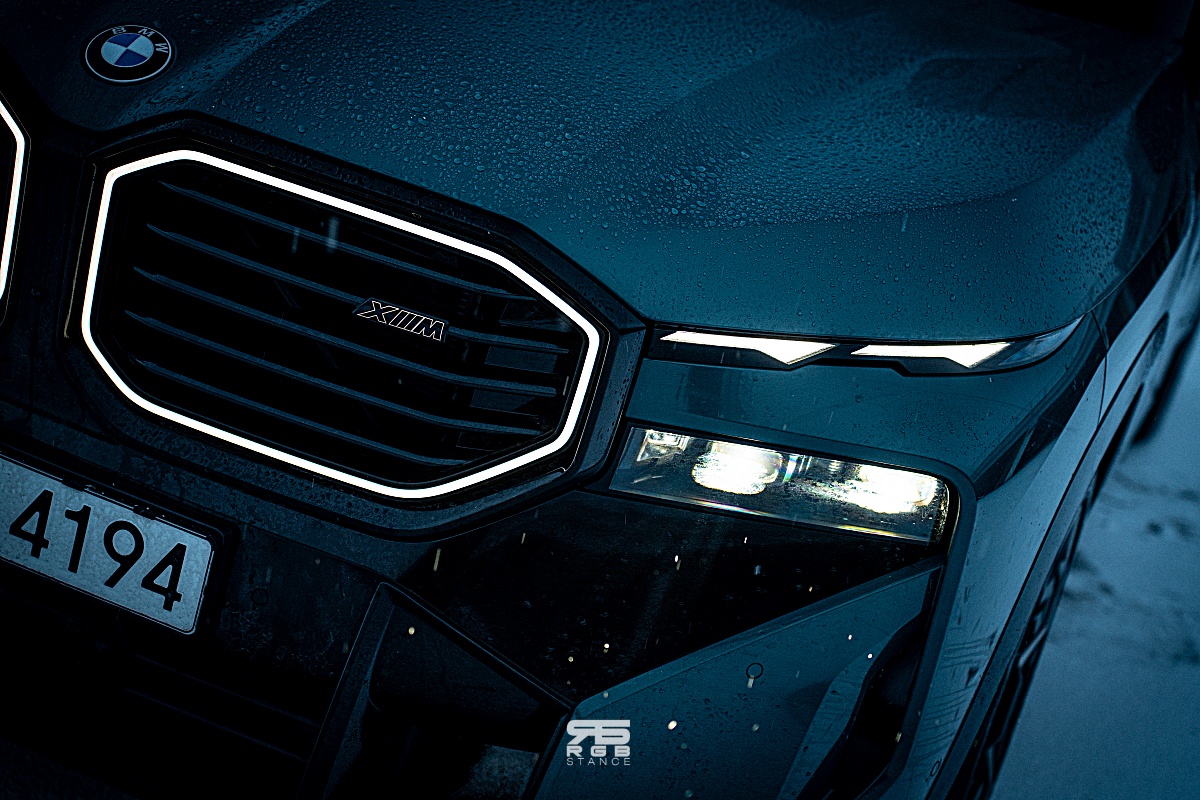 BMW XM 은 지난 M1 이후 처음으로 선보이는 M 전용 모델로, M 하이 퍼포먼스 라인업 최초의 전동화 모델이기도 하다. M 디자인과 진보적 디자인이 조화를 이룬 압도적인 디자인은 커다랗게 적용된 아이코닉글로우 키드니 그릴과 헤드라이트처럼 인식되는 DRL 이 강렬하게 시선을 집중시키는 것으로부터 시작한다.