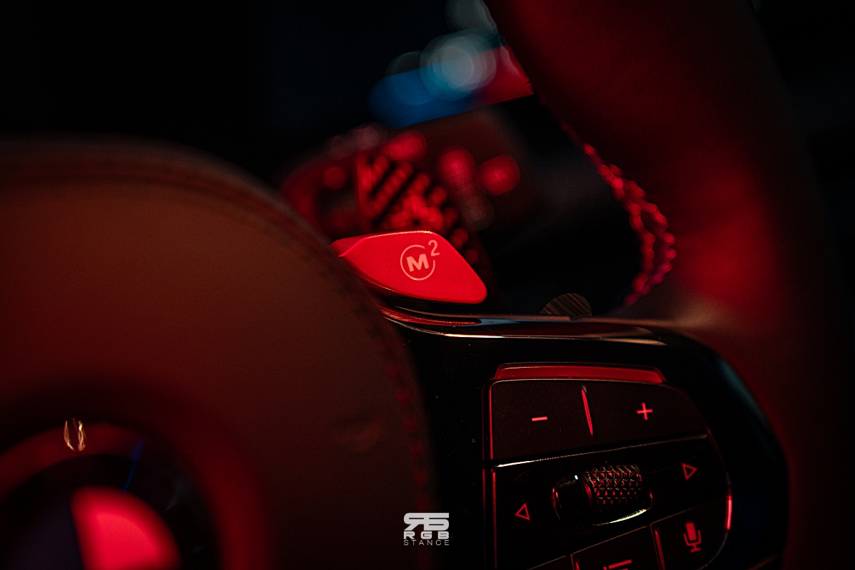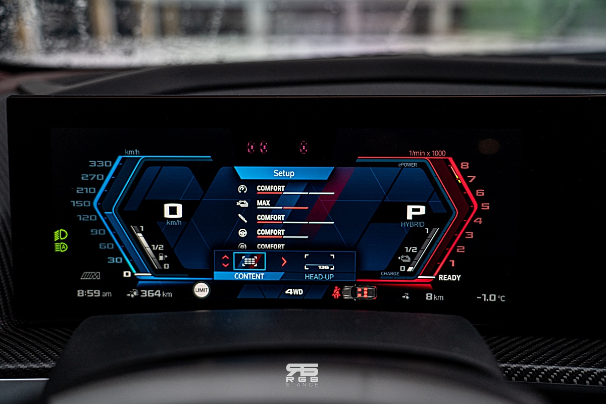 BMW XM 은 M 답게 스티어링휠에 위치한 M1, M2 버튼을 사용해 더욱 짜릿한 드라이빙을 즐길 수 있는데, M 셋업을 통해 구동, 주행기어, 조향, 브레이크, 회생제동, 사륜구동 등을 세팅할 수 있다.