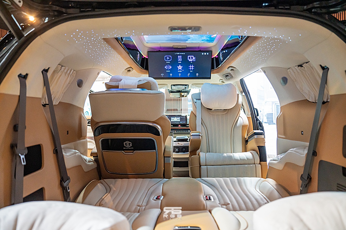 특히, 시트에 안마와 리클라이너 등 다양한 기능들이 적용되어 의전용으로 사용하기에 좋으며, 리무진 시트에 적용된 터치 스크린을 통해 통합 멀티미디어 시스템을 컨트롤 할 수 있다. 리무진시트에 앉아 터치스크린을 통해 후석 공조 시스템을 제어하거나 슬라이드 도어 개폐 및 휴대폰 무선충전 등의 다양한 기능들을 사용할 수 있다는 점은 스탠다드와는 확실히 구분되는 편의성이다.