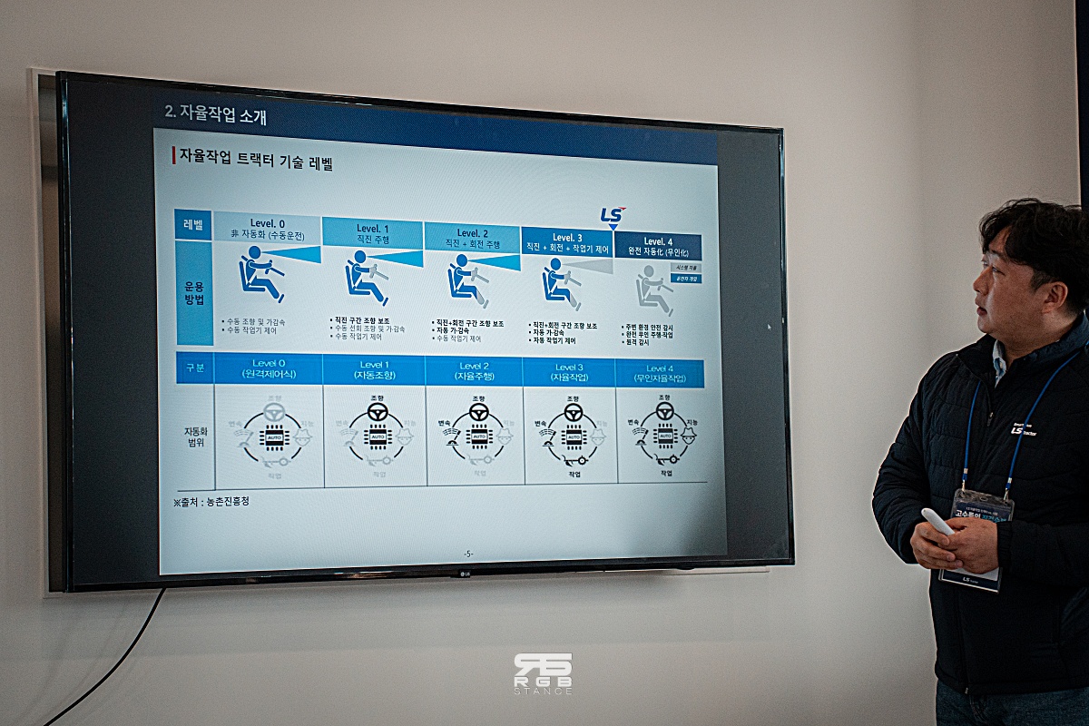 LS 엠트론에는 하우스에 최적화된 사이즈의 컴팩트 트랙터 XR 과 하이브리드 트랙터 MT5 및 작업시간을 25% 줄이고, 생산량을 7~10% 향상시킬 수 있는 자율주행 트랙터 MT7 등의 모델을 만나볼 수 있다. 그 중 MT7 트랙터를 직접 체험해 볼 수 있었는데, 사람이 수동으로 운행하는 것과 자율작업 기능을 사용할 때의 두둑 성형 대결을 통해 LS 자율주행 트랙터의 성능을 확인할 수 있었다.
