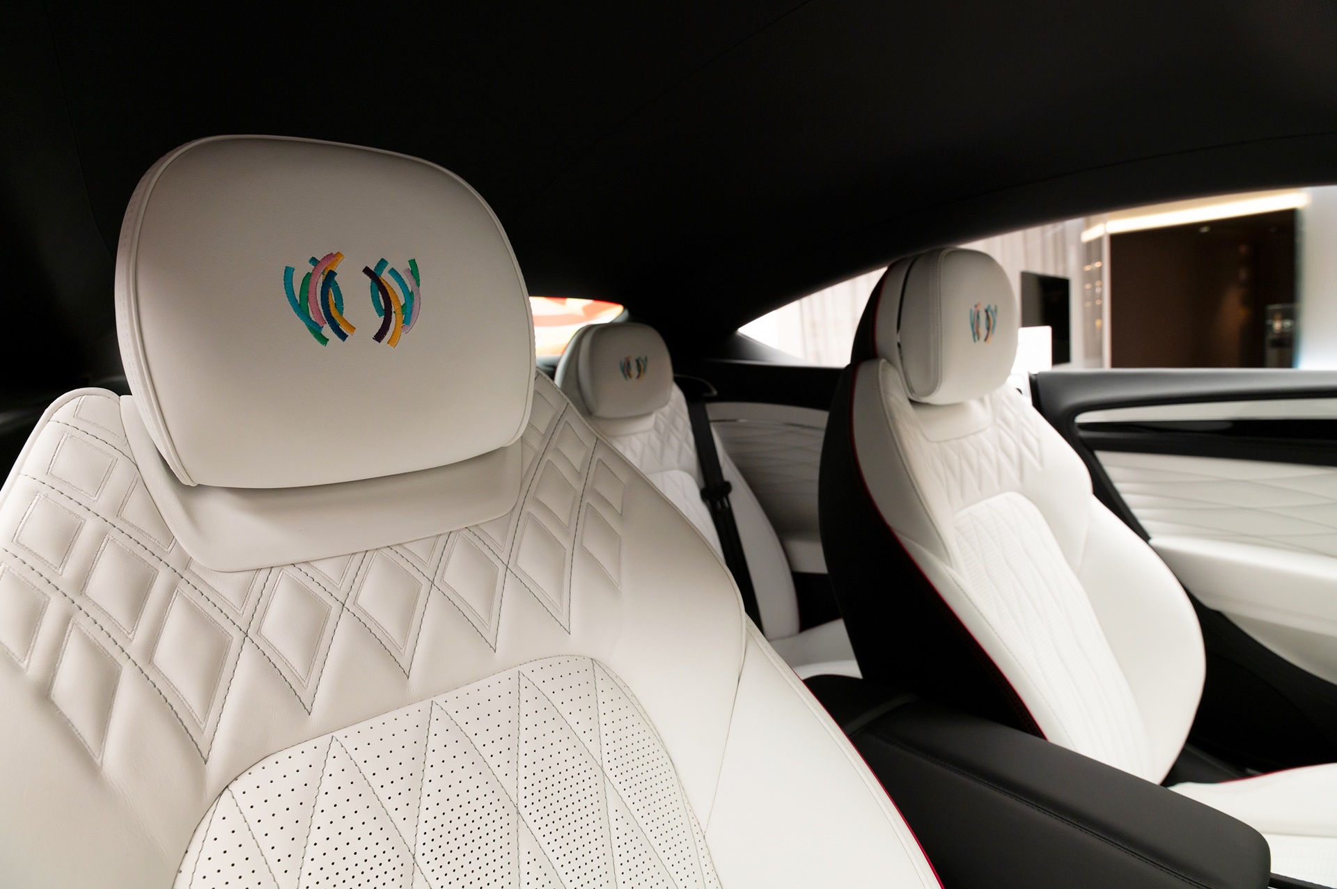 인테리어는 유려한 화이트 컬러의 다이아몬드 퀼티드 시트와 피아노 뮬리너 화이트 & 그랜드 블랙 듀얼 피니시 베니어가 조합돼 순수한 조형적 아름다움과 우아함을 드러낸다. 대시보드에는 시그니처 컬러밴드가 새겨졌으며, 헤드레스트에도 정밀한 컬러밴드 자수가 놓여 미적 완성도를 높였다.