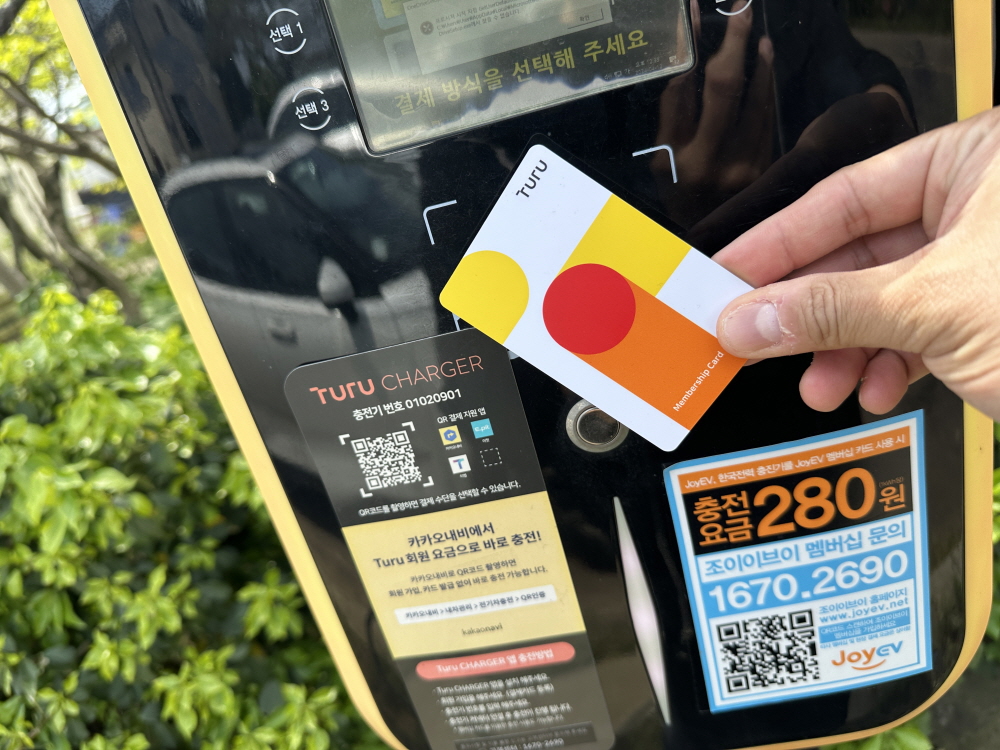 투루차저를 통한 전기차 충전방법은 너무나 간편하다. 앞서 설명한대로 ‘투루차저 제주’ 어플을 이용해 이용 가능한 충전소를 찾고, 투루차저 멤버십 카드를 이용해 충전하면 된다. 참고로, 멤버십 카드의 경우, 회원가입 시 어플을 통해 발급 신청 가능하며, 신청 이후 우편으로 7일~14일 이내에 수령할 수 있다. 충전비용은 완속(7kW) 280원, 급속(50kW) 320원, 초급속(100kW이상) 340원 이며, 비회원의 경우에는 일괄적으로 480원/kW 이니, 저렴하게 충전서비스를 이용하려면 회원가입이 절대적으로 유리하다.