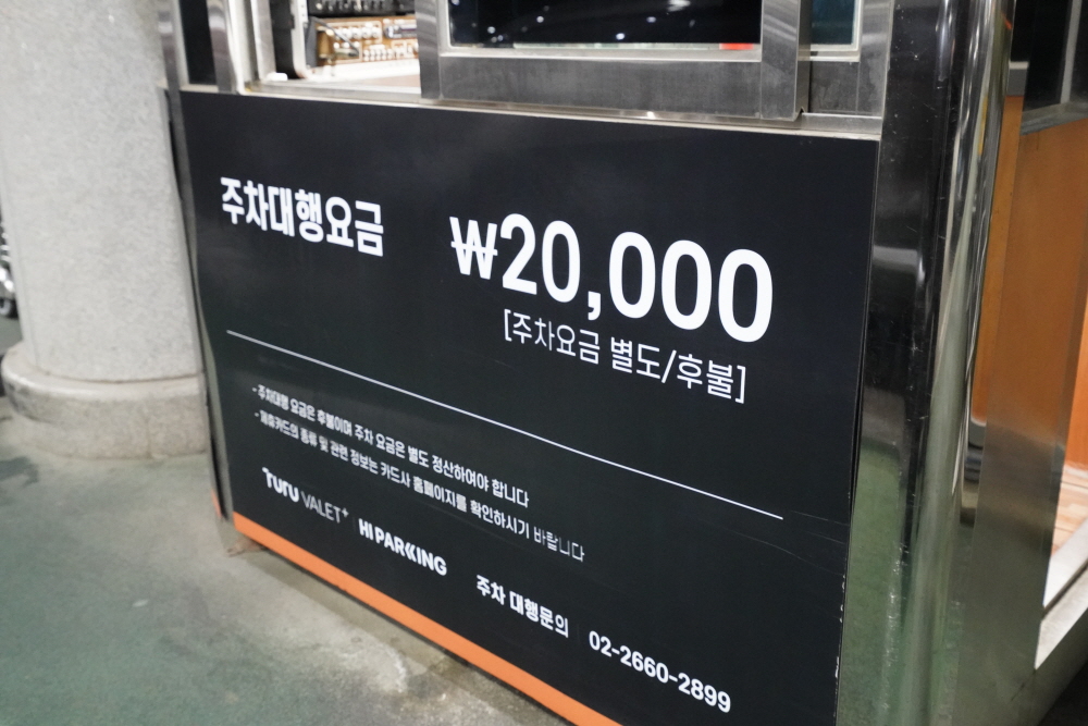 서비스 이용 요금은 일반 승용차 기준으로 1회 2만원이며, 후불 결제되는 방식이다. 참고로, 주차대행료는 제휴카드가 있다면 무료로도 이용 가능하다.(제휴카드 : 삼성, 현대, BC 등 40여개가 있으며, 프로모션 등 확인 필수) 그리고, 주차대행료와는 별개로 주차비는 별도로 부과된다.(일 최대 2~4만원 부과)