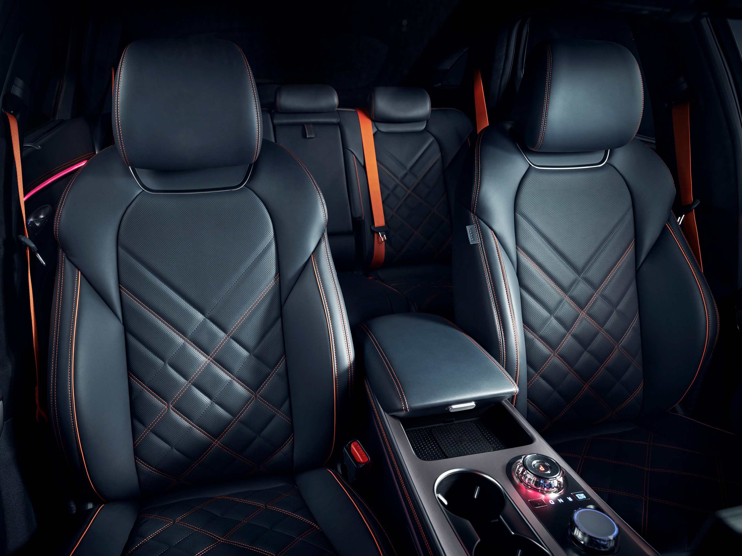 제네시스는 GV70 스포츠 패키지의 실내에 ▲전용 D컷 스티어링 휠 ▲오렌지 색상의 시트 벨트와 스티치를 새롭게 적용해 스포티한 매력을 한층 높였다.