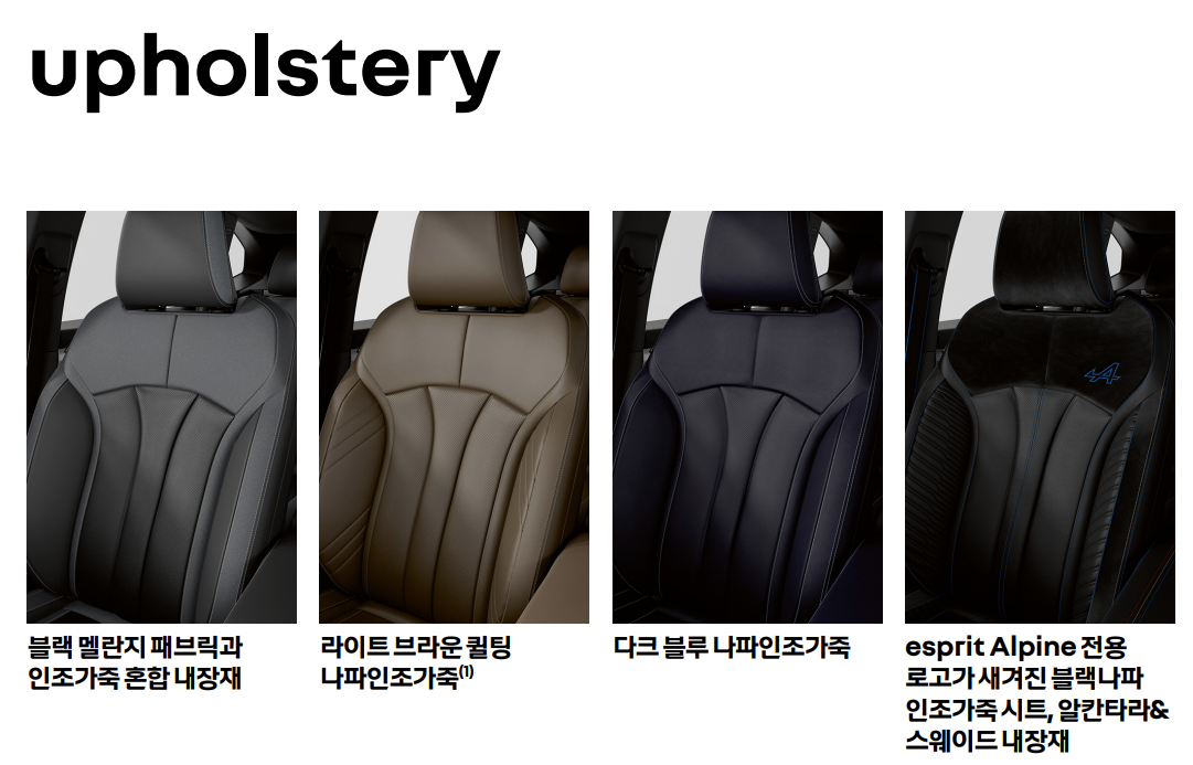 그 중, Esprit Alpine 버전이 인상적인데, 1955년 설립된 프랑스의 상징적인 모터스포츠 브랜드 알핀(Alpine) 과의 파트너쉽을 일환으로 투톤 바디 컬러와 알핀 브랜드의 푸른색 포인트들이 프론트 그릴부터 시작해 실내 스티치까지 적용되었으며, 알칸타라가 인테리어에 적용되는 등 차별화를 둔 모습이 눈에 띈다.