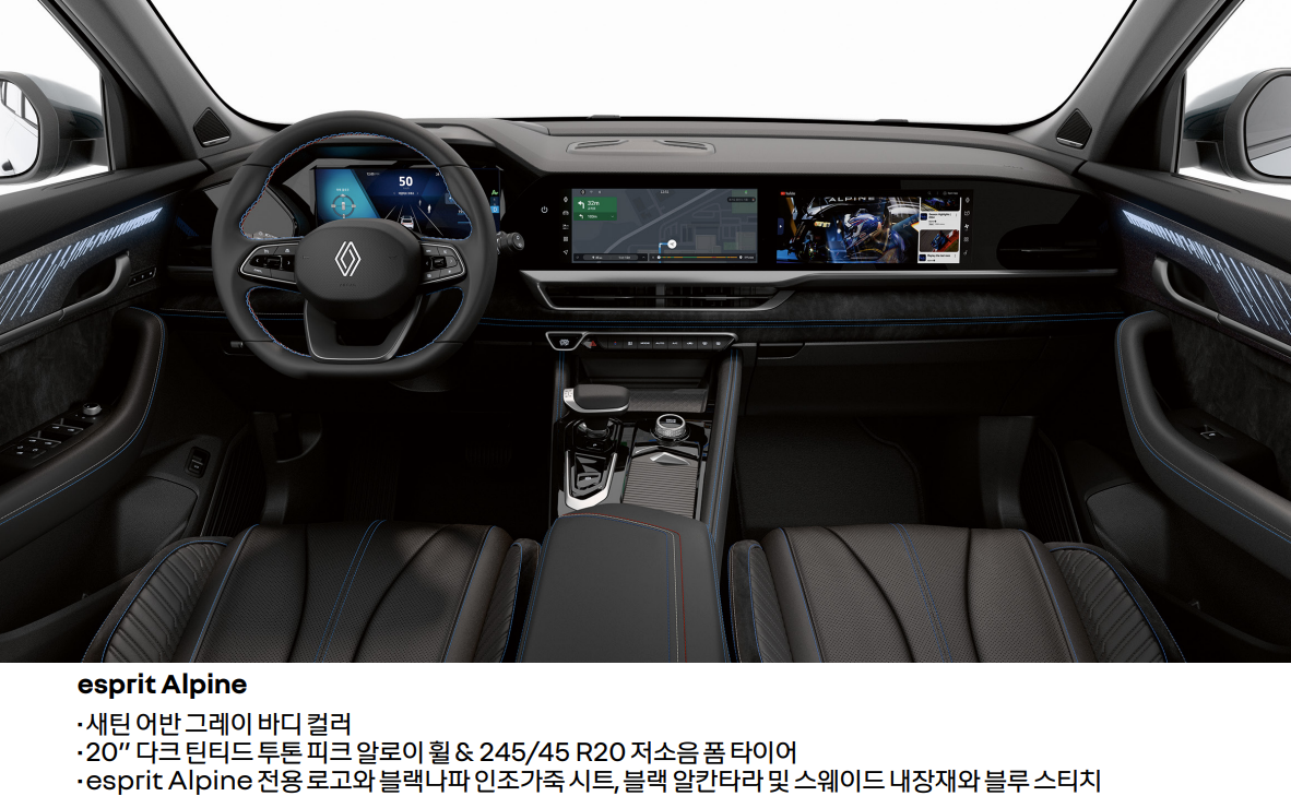 또한, 실에서 가장 눈길을 끄는 것은 openR 파노라마 스크린인데, 아이코닉(iconic, esprit Alpine 트림에 해당) 12.3 인치 디스플레이가 계기판에서부터 동승석에까지 총 3개나 적용되었다. 동승석에서는 엔터테인먼트를 즐길 수 있으며, 5G 커넥티비티와 스마트폰 무선 미러링을 통해 유튜브나 인터넷 서칭, SNS 기능과 TMAP 내비게이션까지 적용되어 있어 기존 고객들의 불만사항들들 줄일 수 있을 것으로 보여진다.