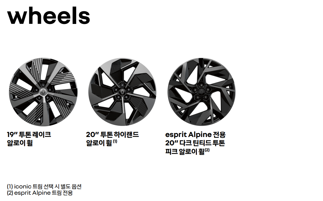 그 중, Esprit Alpine 버전이 인상적인데, 1955년 설립된 프랑스의 상징적인 모터스포츠 브랜드 알핀(Alpine) 과의 파트너쉽을 일환으로 투톤 바디 컬러와 알핀 브랜드의 푸른색 포인트들이 프론트 그릴부터 시작해 실내 스티치까지 적용되었으며, 알칸타라가 인테리어에 적용되는 등 차별화를 둔 모습이 눈에 띈다.