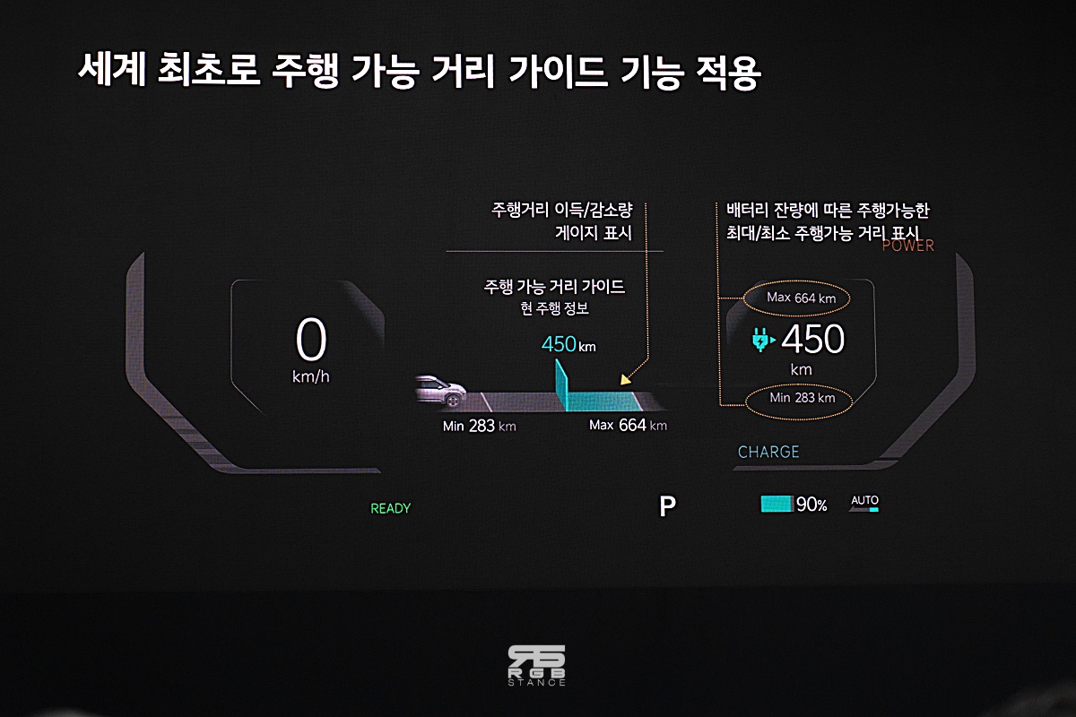 기존에 표시되던 주행 전비를 기반으로 계산된 주행 가능 거리 외에 운전 스타일에 따라 도달할 수 있는 최대/최소 주행 가능 거리를 알려주는 ‘주행 가능 거리 가이드’ 가 EV3 에 적용되었다. 이를 통해 운전자의 운전 습관이 전비에 어떤 영향을 미치는지 즉각적으로 알 수 있어서 전비에 도움이 되는 운전을 할 수 있도록 도움을 주는 기능인데, 이는 에너지 밀도를 향상시킨 동급 최대 수준의 81.4kWh 4세대 배터리를 통해 1회 충전시 501km(롱레인지 17인치 기준) 의 거리를 주행할 수 있는 것에서 최대 664km 정도의 거리까지 주행할 수 있어 장거리 주행에도 스트레스를 받지 않도록 해 간단하지만 전기차 대중화를 이끌만한 기술이다.