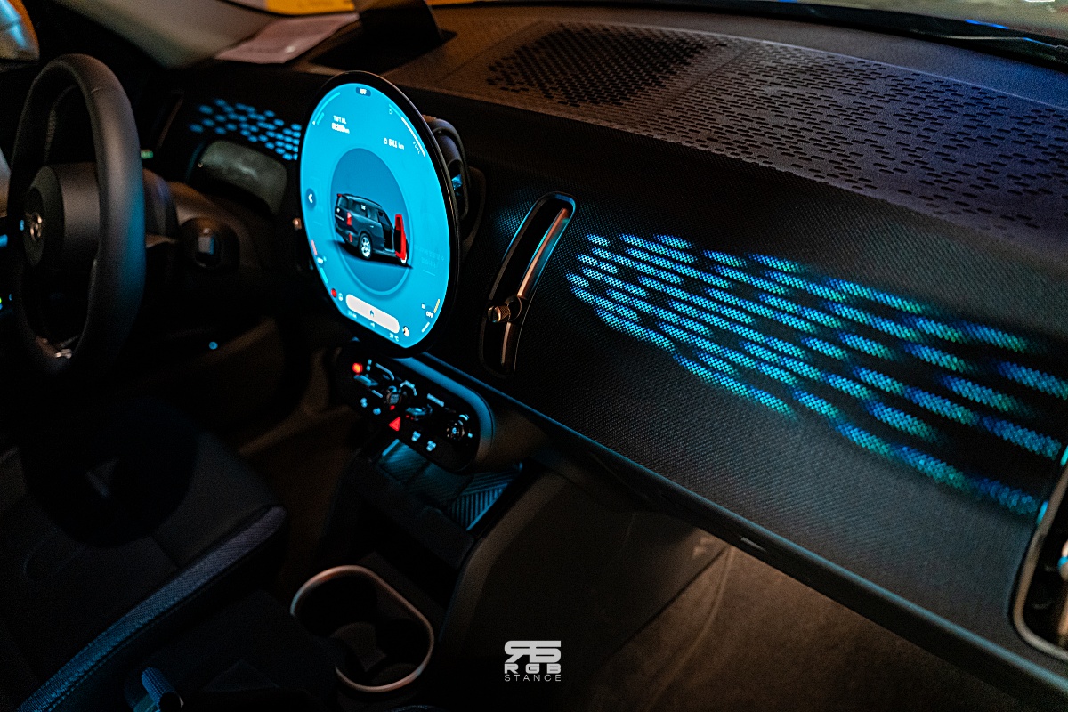 실내는 미니답게 간결하면서도 친환경 패브릭 소재들을 적용해 세련된 분위기를 만들어준다. 여기에 원형 OLED 는 미니멀한 인테리어를 완성시켜주고 있으며, 앰비언트가 감성을 더해준다.